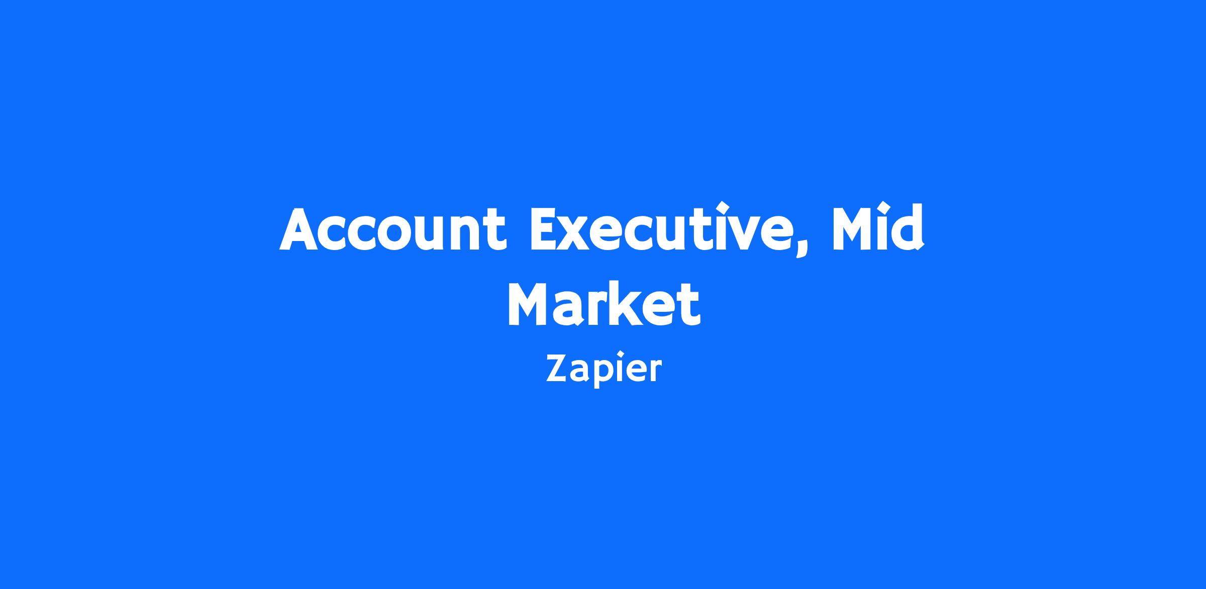 We’re looking for experienced Account Executives to join our growing Sales team. In this role, you’ll join the Mid Market sales team and be responsible for selling Zapier’s AI Orchestration and Automation platform offerings to customers. A successful Account Executive has demonstrated success selling to companies with 250+ employees. They can build a pipeline through both inbound and outbound channels, can successfully sell to both executive buyers of Zapier and technical end users of the product, work collaboratively with cross-functional teams (Product Marketing, Engineering, Demand Generation, RevOps, etc), and take ownership for the outcomes of the program.