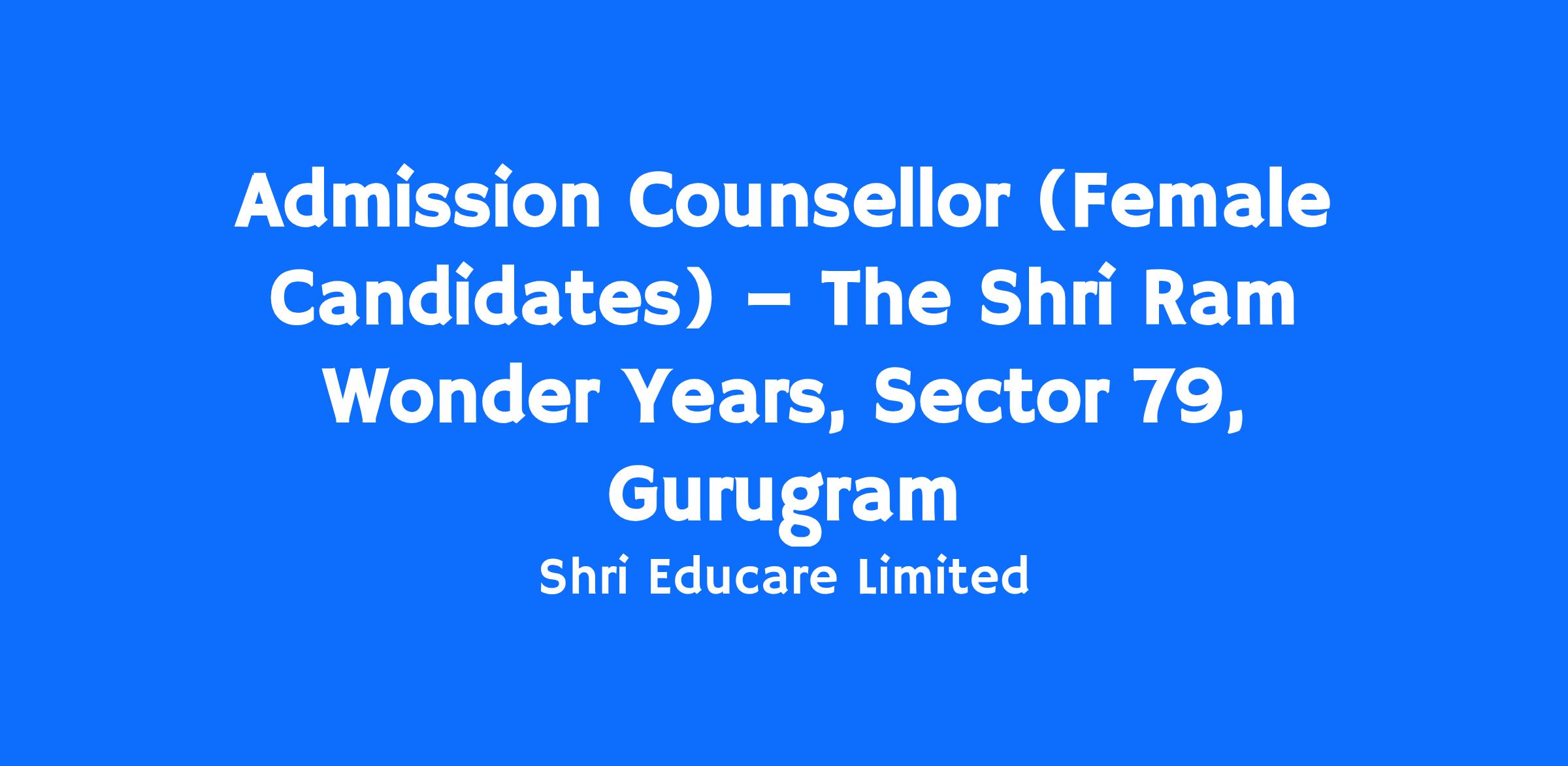 The Shri Ram Wonder Years, Sector 79, Gurugram invites smart, energetic and creative professionals to be a part its family. We are looking for someone who can initiate, develop and be a part of our quest for excellence in holistic education. The role primarily focuses on the following: