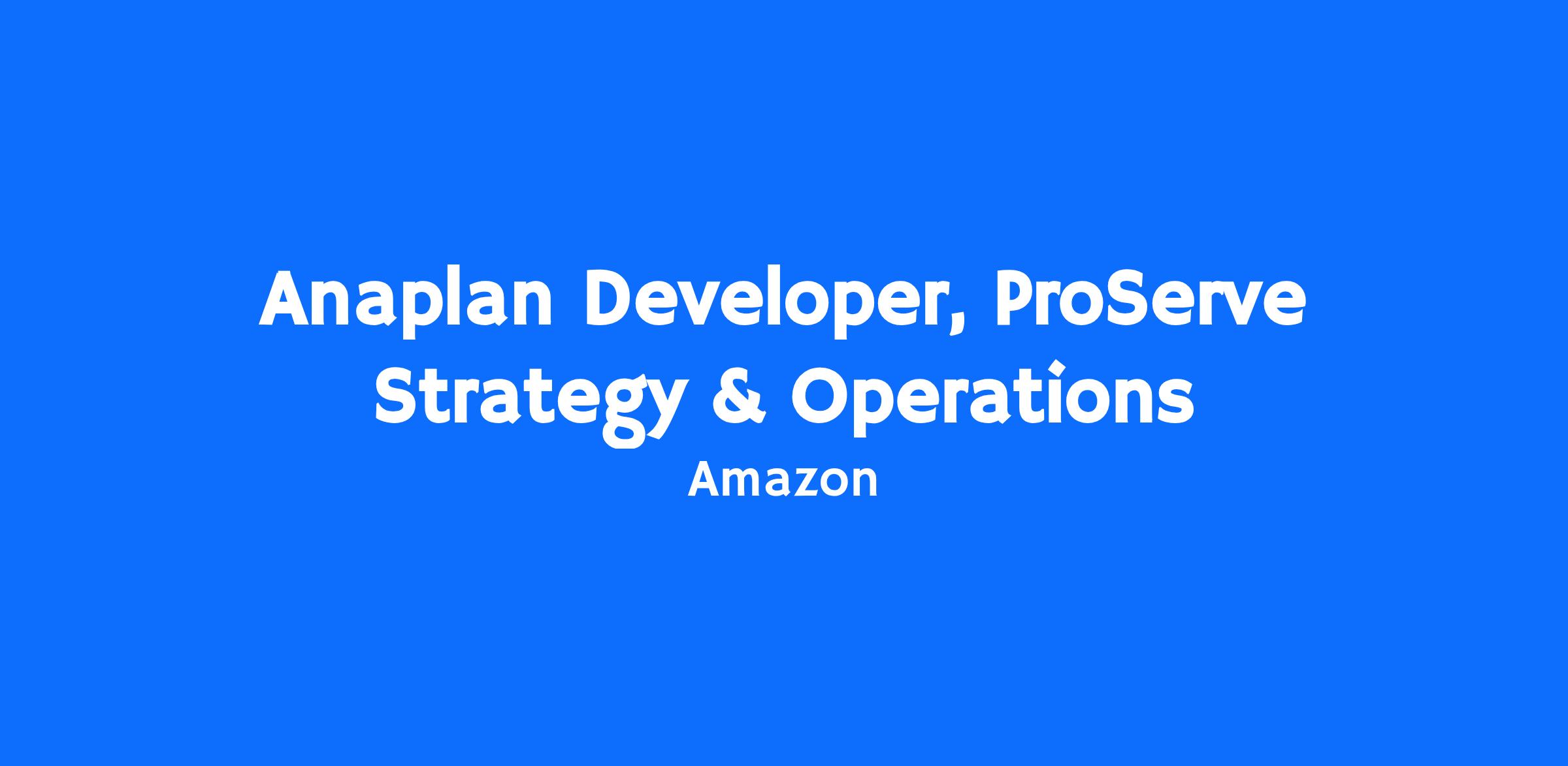 Amazon Web Services (AWS), Professional Services (ProServe) Strategy & Operations is seeking an Anaplan Developer to assist with the generation, standardization, and automation of forecasting models, planning processes, and reporting. The role is part of a global operations and business optimization team charged with identifying and explaining business trends and impact. Candidates should have advanced Anaplan skills and experience building models that can scale to hundreds and thousands of users.