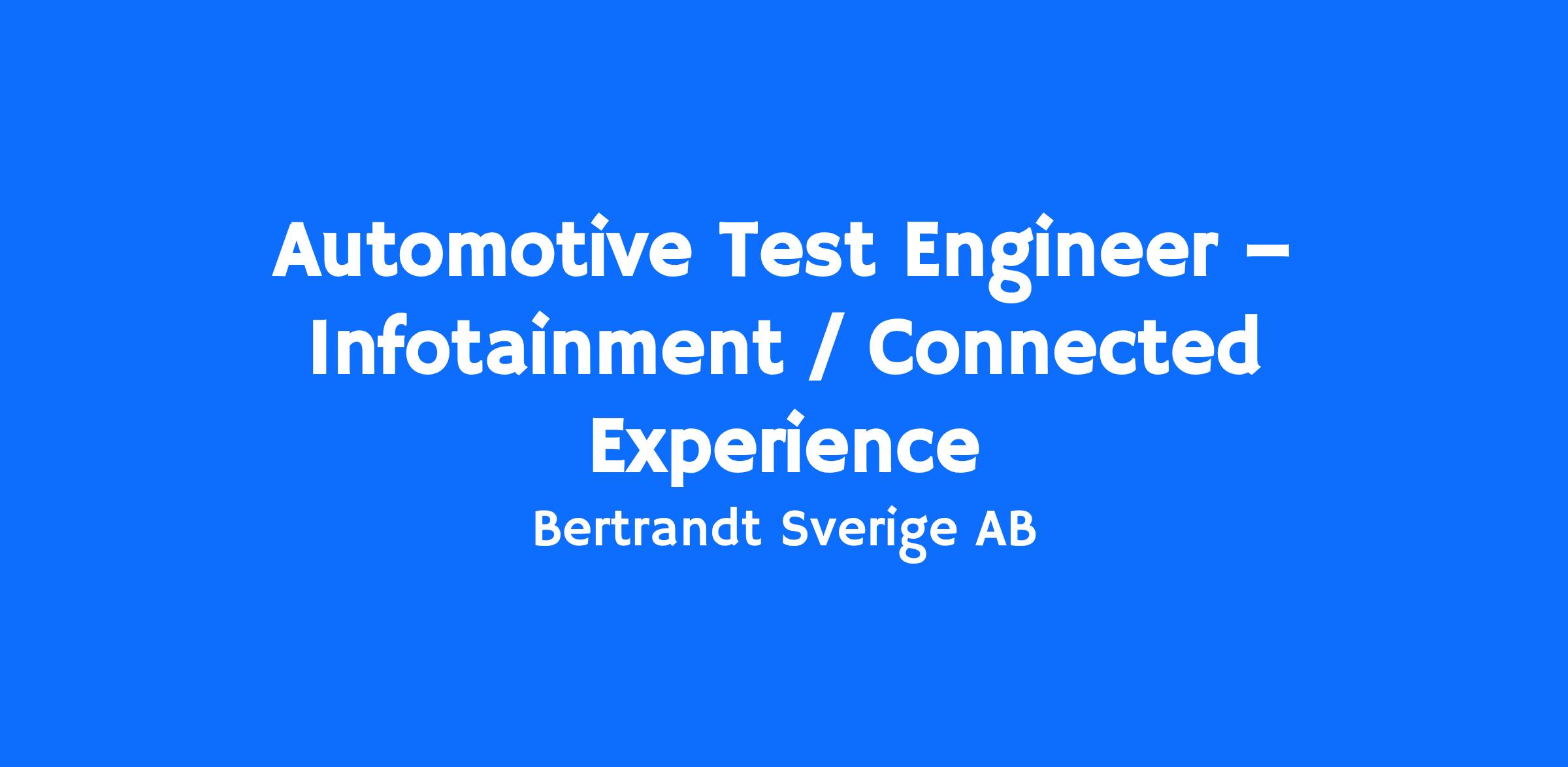Automotive Test Engineer – Infotainment / Connected Experience