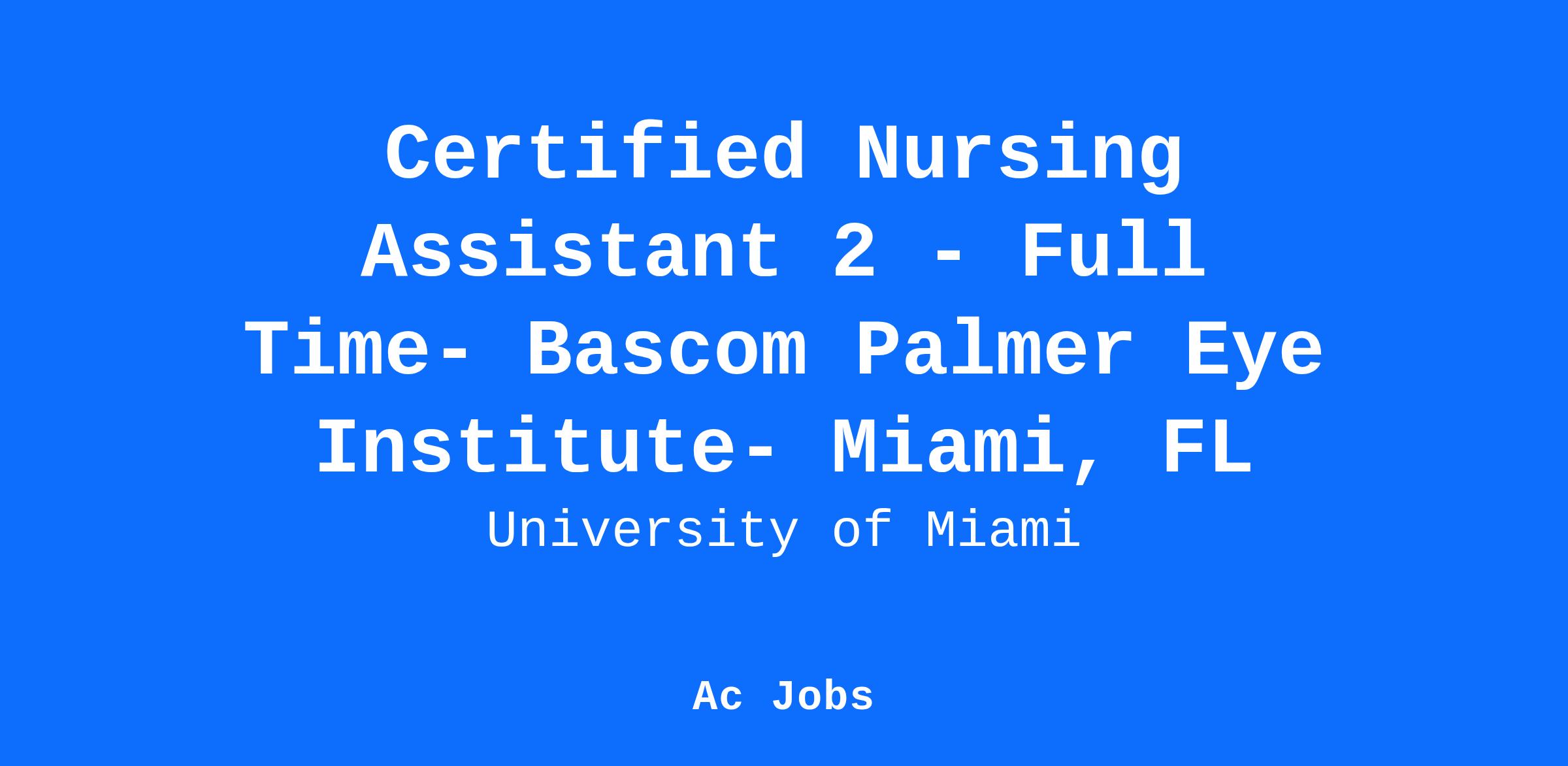 The University of Miami, Bascom Palmer Eye Institute, has an exciting full time opportunity for a Certified Nursing Assistant 2 for the Emergency Department in Miami, Florida.
