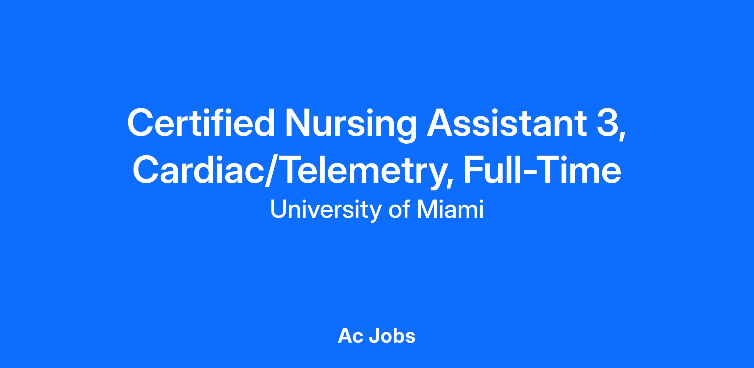Work Location: University of Miami Hospital UTower - Cardiac/Telemetry Nursing 8 North