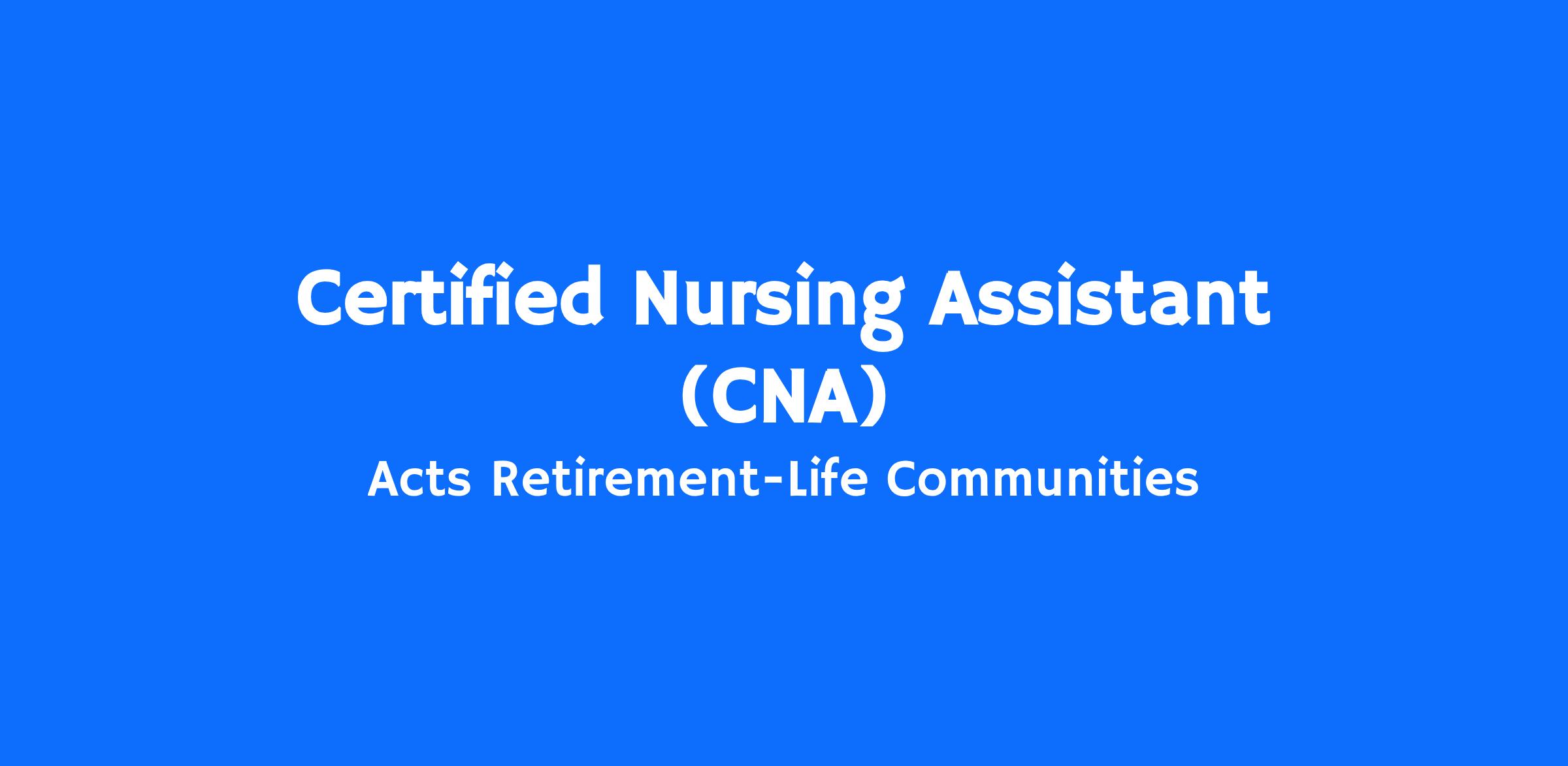 Acts is currently seeking qualified candidates for the role of Certified Nursing Assistant (CNA) in our skilled nursing neighborhood.