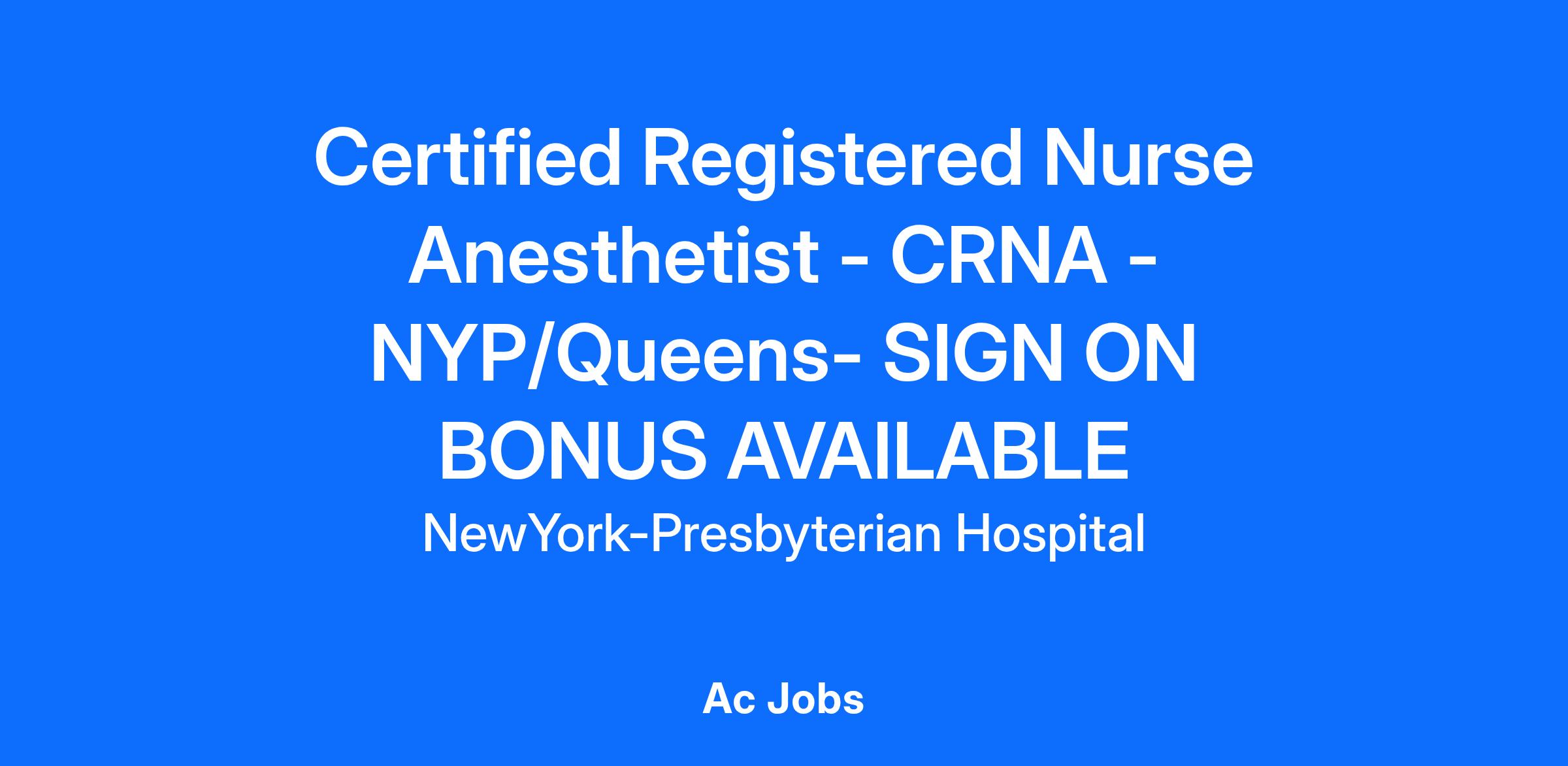 Certified Registered Nurse Anesthetist - CRNA -NYP/Queens- SIGN ON BONUS AVAILABLE