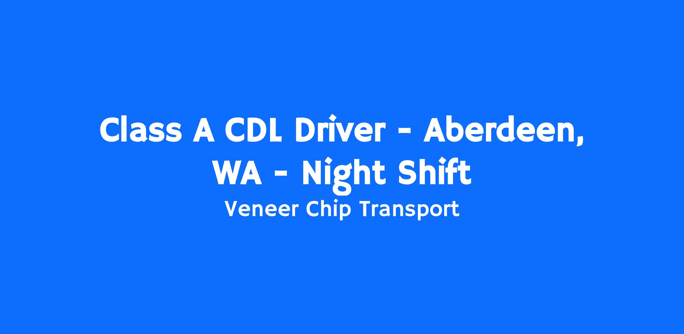 VCT is currently looking for safe and reliable Class A CDL truck drivers for our night shift in the Aberdeen area. This team member is responsible for hauling wood residuals from various mills to various destinations.