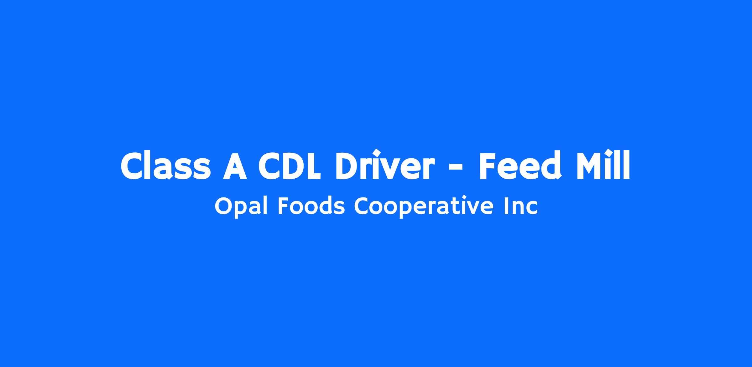 Opal Foods is looking for a Class A CDL Driver. This position is responsible for safely hauling loads of feed locally to various company facilities and contract farms while maintaining compliance with all company policies, DOT rules, and governmental regulations.