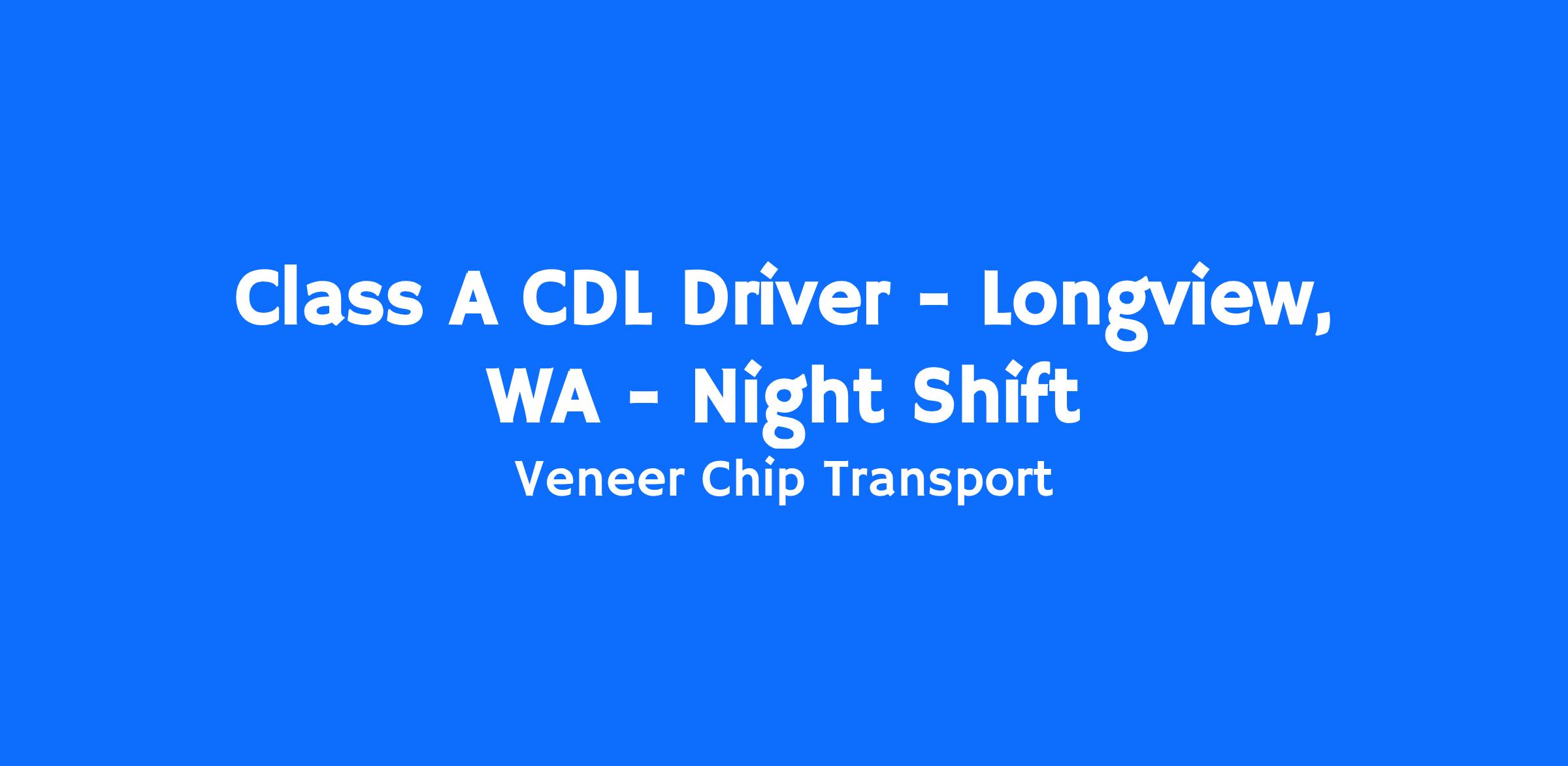 VCT is currently looking for safe and reliable Class A CDL truck drivers for our night shift in the Longview area. This team member is responsible for hauling wood residuals from various mills to various destinations.