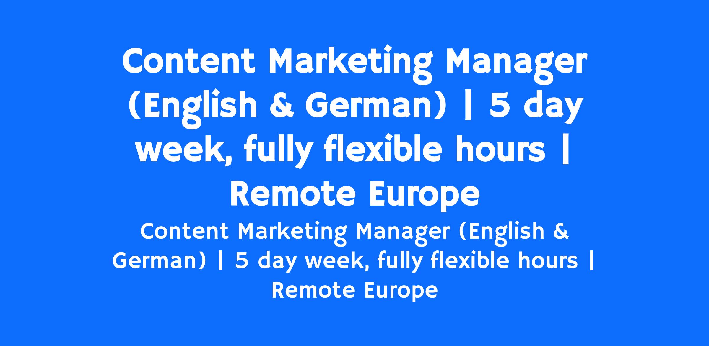 Content Marketing Manager (English & German):