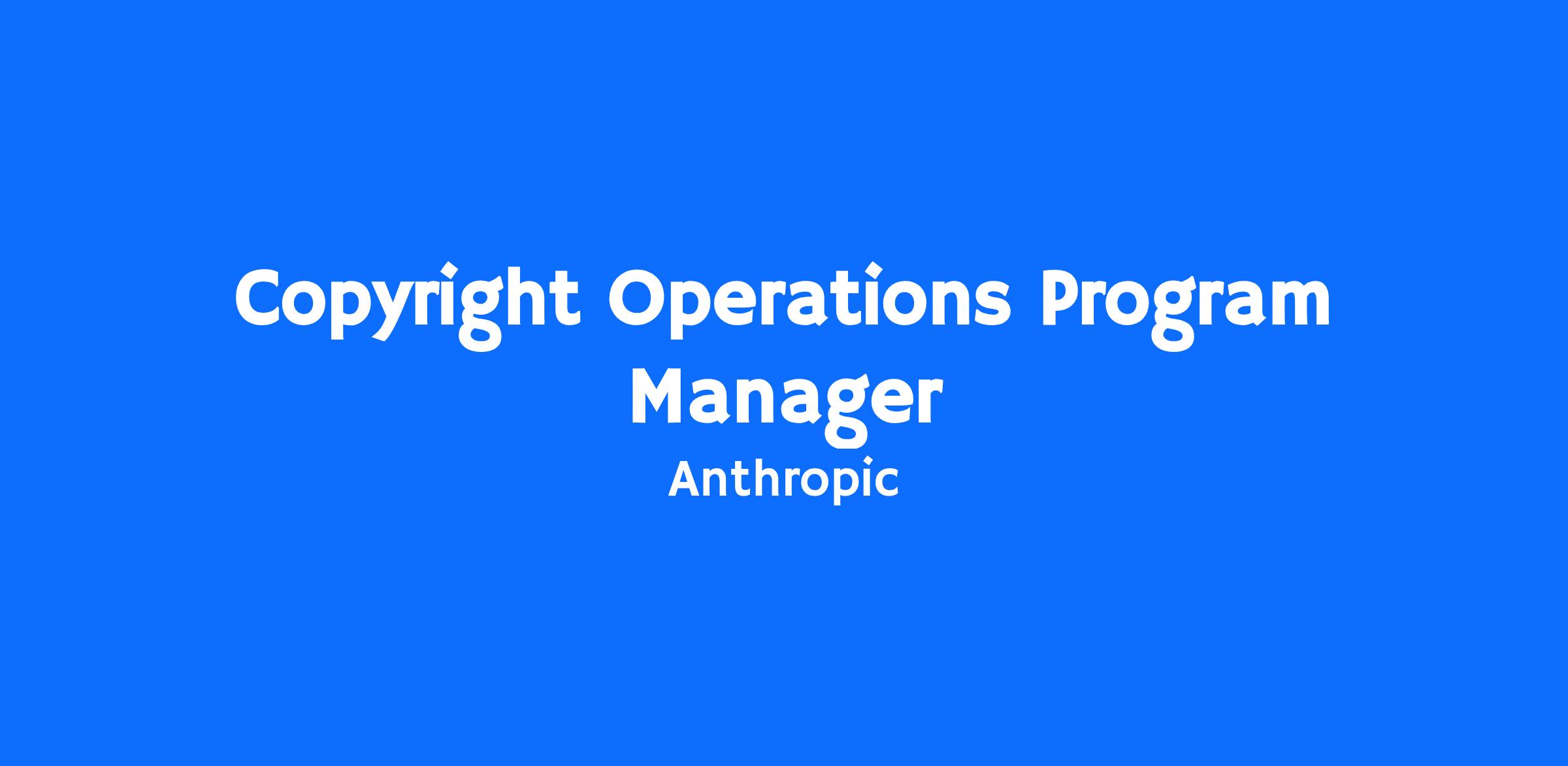 We are seeking a Copyright Operations Program Manager to help build and run Anthropic's dedicated Copyright Operations program. This role is critical to standing up the infrastructure, workflows, and processes needed to handle copyright compliance at scale. You'll be responsible for processing DMCA and other copyright takedown notices, managing URL opt-out requests, supporting regulatory compliance workflows, and helping consolidate intake channels into a unified, trackable system. This is a ground-floor opportunity: you'll be building the program and running it simultaneously, shaping how Anthropic handles copyright operations as our product capabilities and international obligations grow.