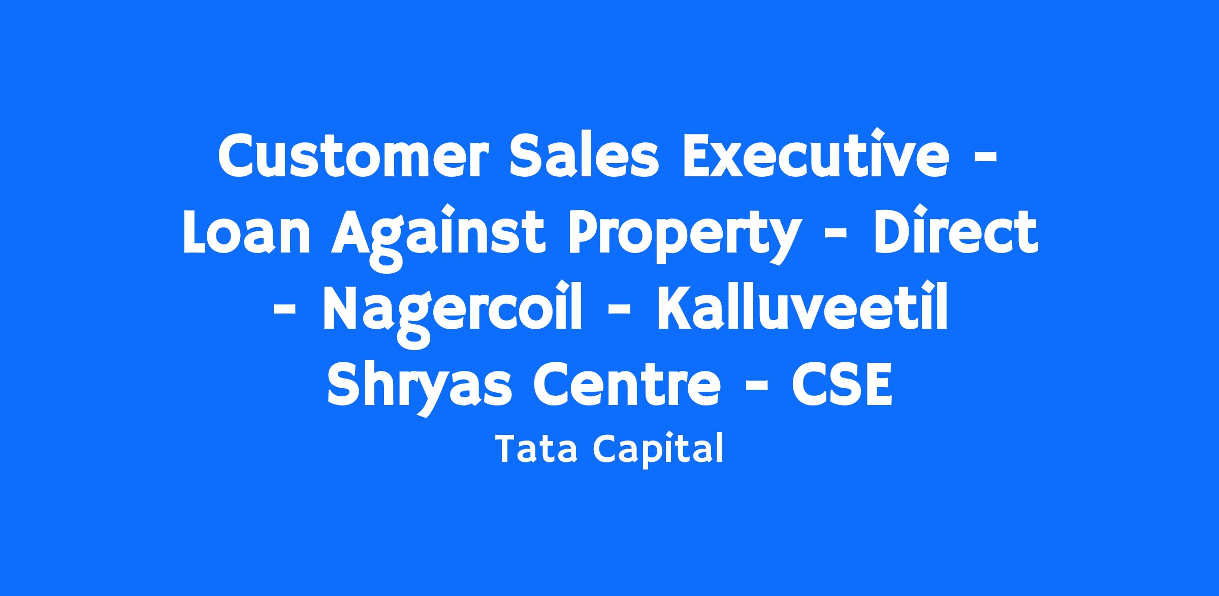 Customer Sales Executive - Loan Against Property - Direct - Nagercoil - Kalluveetil Shryas Centre - CSE