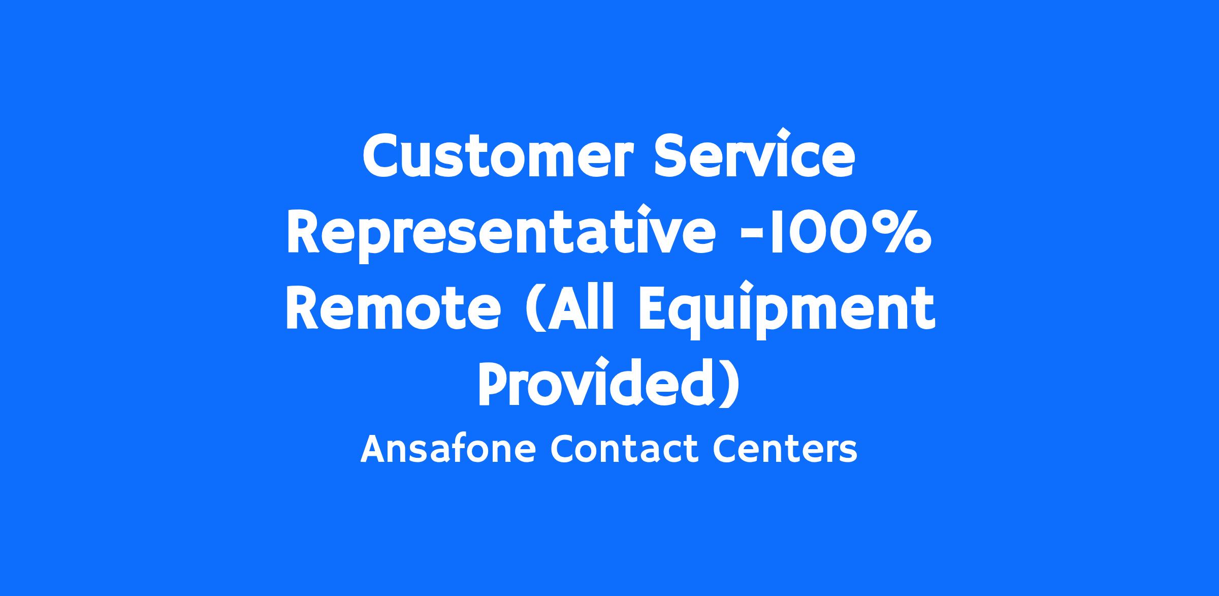 Customer Service Representative -100% Remote (All Equipment Provided)