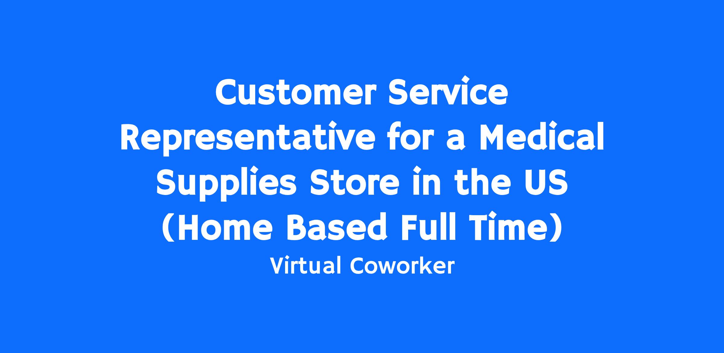 https:\/\/www.linkedin.com\/company\/virtual\-coworker"}],"isMobile":false,"iframe":"true","jobType":"Full time","applyName":"Apply Now!","zsoid":"8208015","FontFamily":"Arial, Helvetica, sans\-serif","jobOtherDetails":[{"fieldLabel":"Job Category","uitype":2,"value":"Customer Service\/Technical Support"},{"fieldLabel":"Work Schedule","uitype":1,"value":"Monday to Friday, 8:30am \- 5:30pm Central Standard Time"},{"fieldLabel":"Hours Per Day","uitype":2,"value":"Full Time â 8 hours per day"},{"fieldLabel":"Industry","uitype":2,"value":"Health Care"},{"fieldLabel":"Client Location","uitype":2,"value":"USA"},{"fieldLabel":"Work Location","uitype":1,"value":"Home Based \- Philippines"},{"fieldLabel":"City","uitype":1,"value":"Humble"},{"fieldLabel":"State\/Province","uitype":1,"value":"Texas"},{"fieldLabel":"Zip\/Postal Code","uitype":1,"value":"77338"}],"headerName":"Customer Service Representative for a Medical Supplies Store in the US (Home Based Full Time)","widgetId":"147741000000390320","isJobBoard":"false","userId":"147741000000027001","attachArr":[],"customTemplate":"3","isCandidateLoginEnabled":true,"jobId":"147741000074437166","FontSize":"12","location":"Humble","embedsource":"CareerSite","logoId":"idwop0ece2fcac21a443ba16938fb832bdc3b"}
