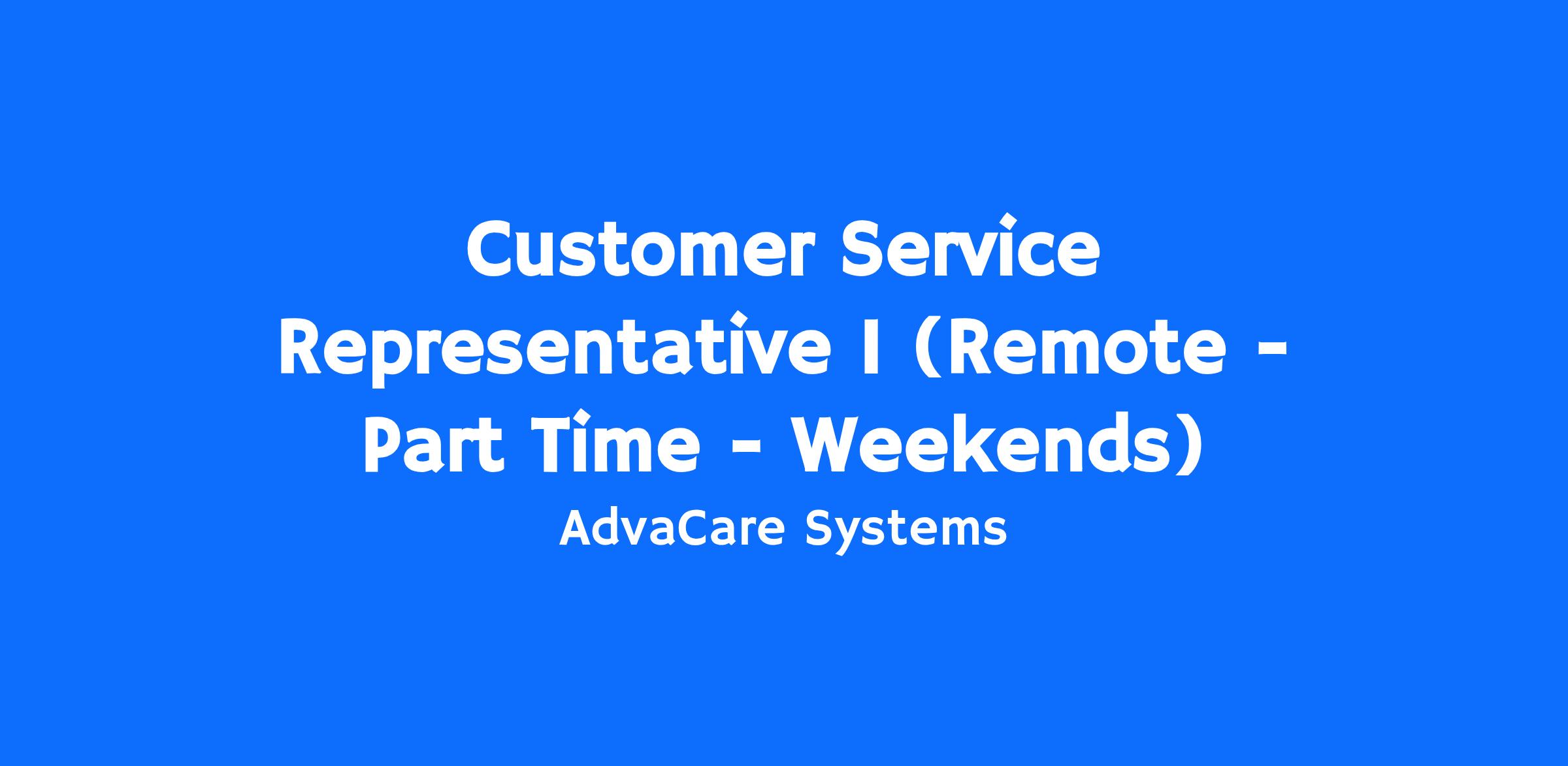 The Customer Service Representative I is a call center position responsible for being the first point of contact for all of AdvaCare’s internal and external customers.