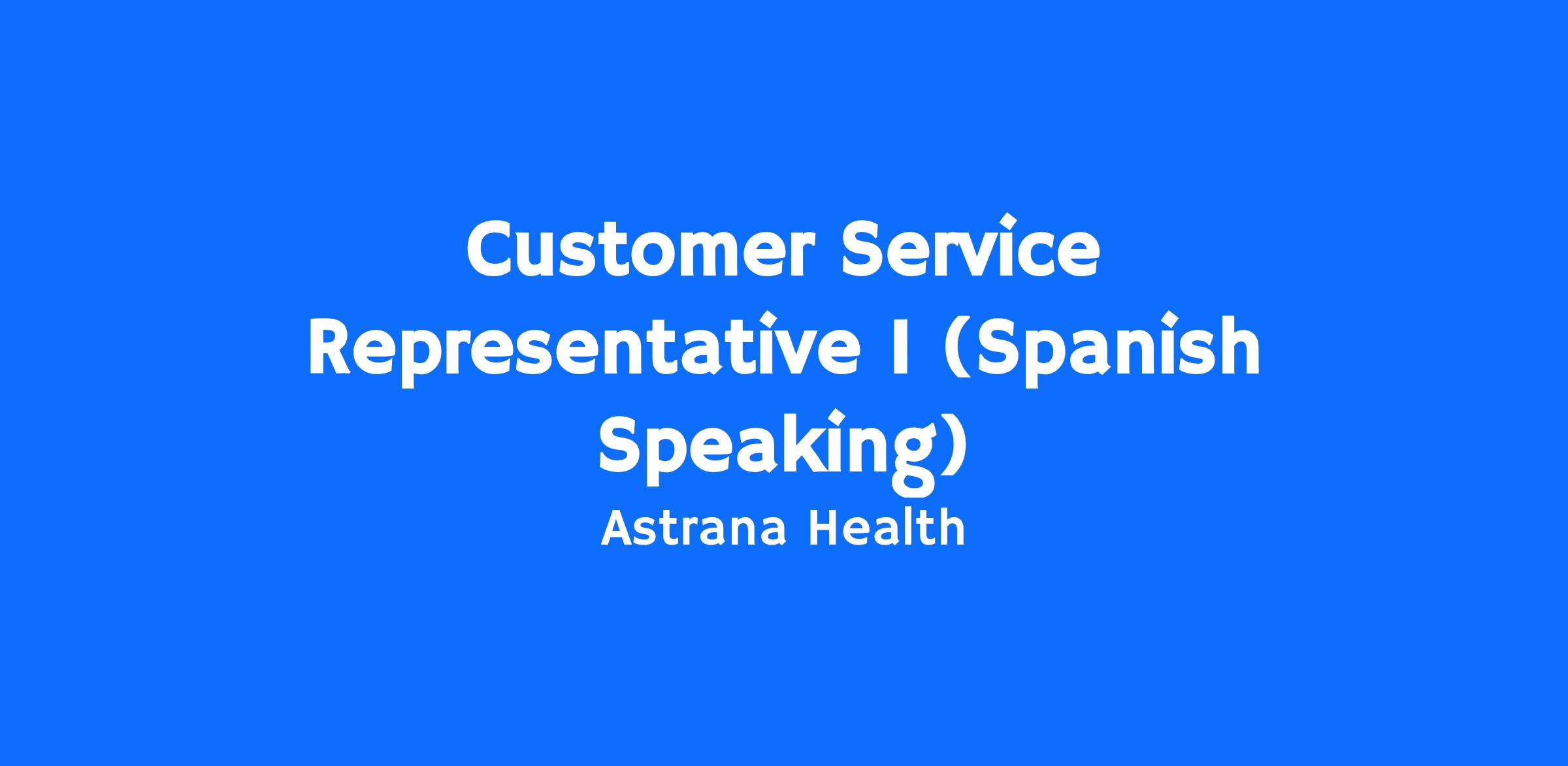 About the Role: Astrana is looking for a Customer Service Representative to join our fast and growing Dynamic team. This position requires speaking fluent in Spanish.