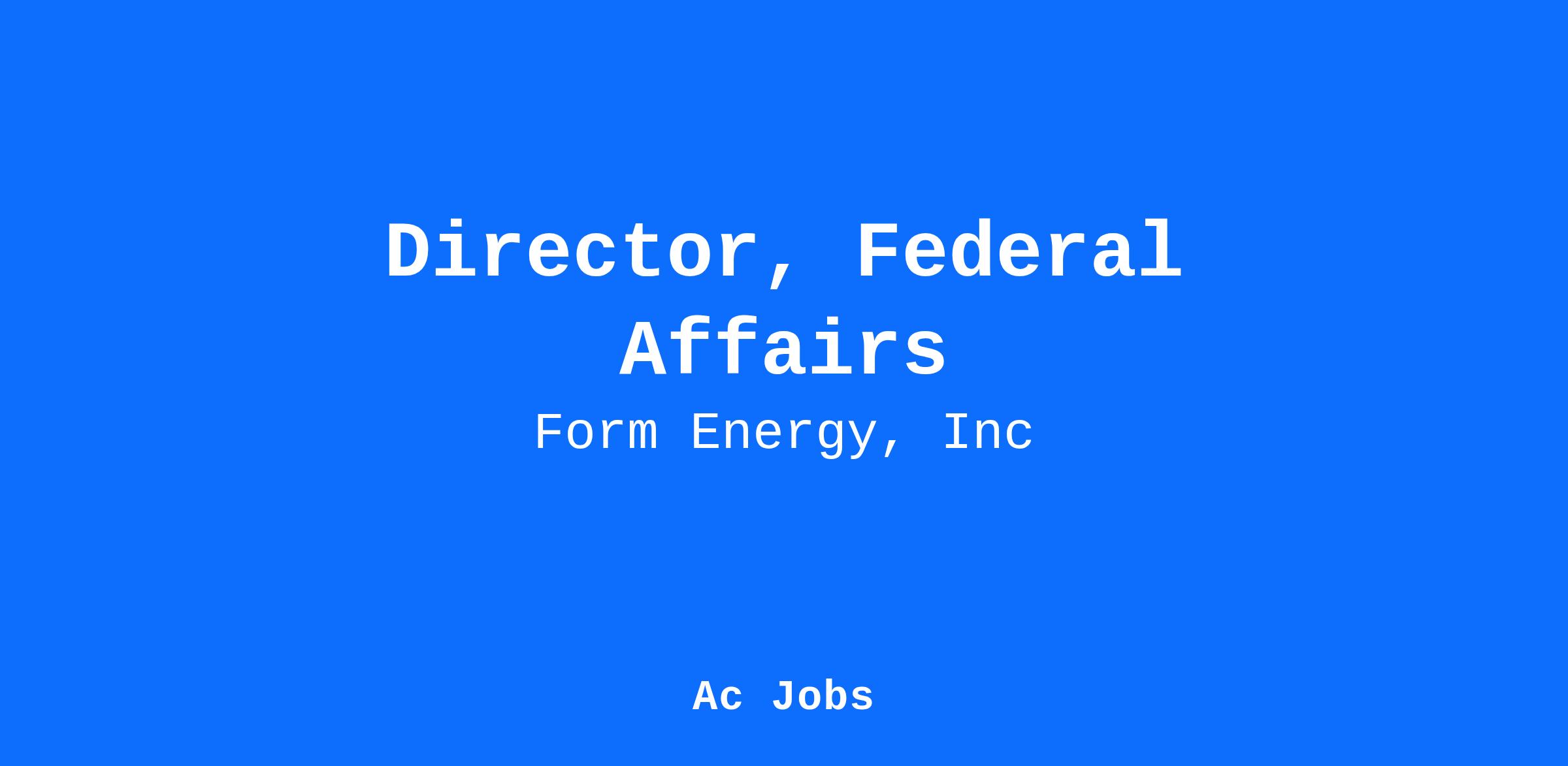 Form Energy is seeking a strategic, driven, and highly experienced Director of Federal Affairs to lead our engagement with the U.S. federal government. In this pivotal role, you will shape and execute our federal policy agenda to support Form Energy’s mission to transform the electric grid. You will be responsible for building and maintaining high-impact relationships with the U.S. Department of Energy and other federal agencies, Congress, and key partners, while delivering measurable policy outcomes that advance our business and regulatory objectives.