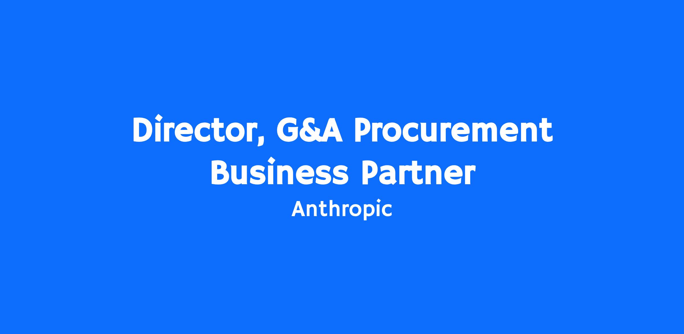 We're looking for a Director of G&A Procurement Business Partnership to serve as the strategic procurement owner across Anthropic's Finance, Legal & Policy, GTM, and People & Workplace verticals. This role reports to the Head of Procurement.