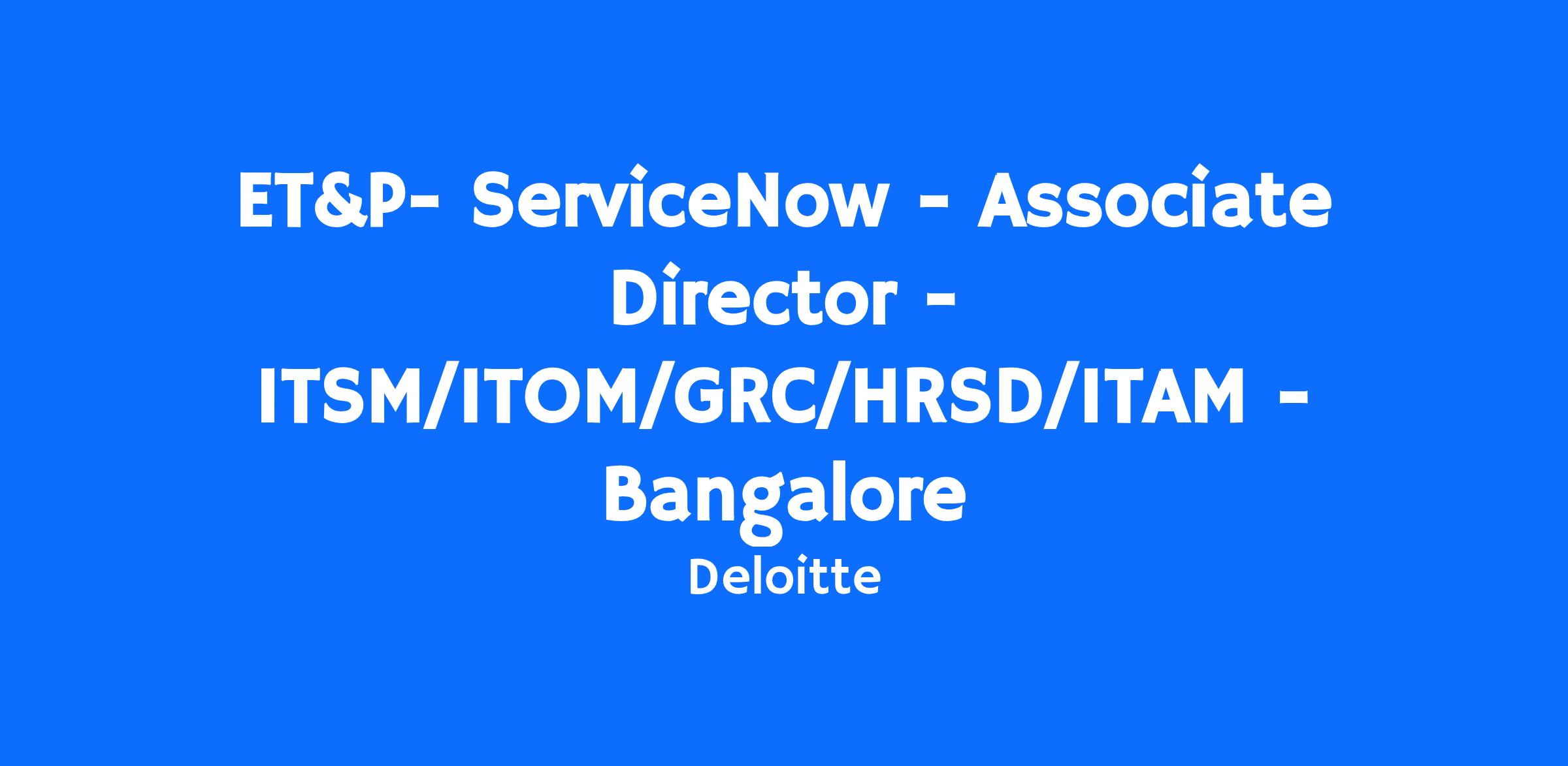 Associate Director| ITOM/ITSM/GRC/ITAM/HRSD | Bangalore| TST