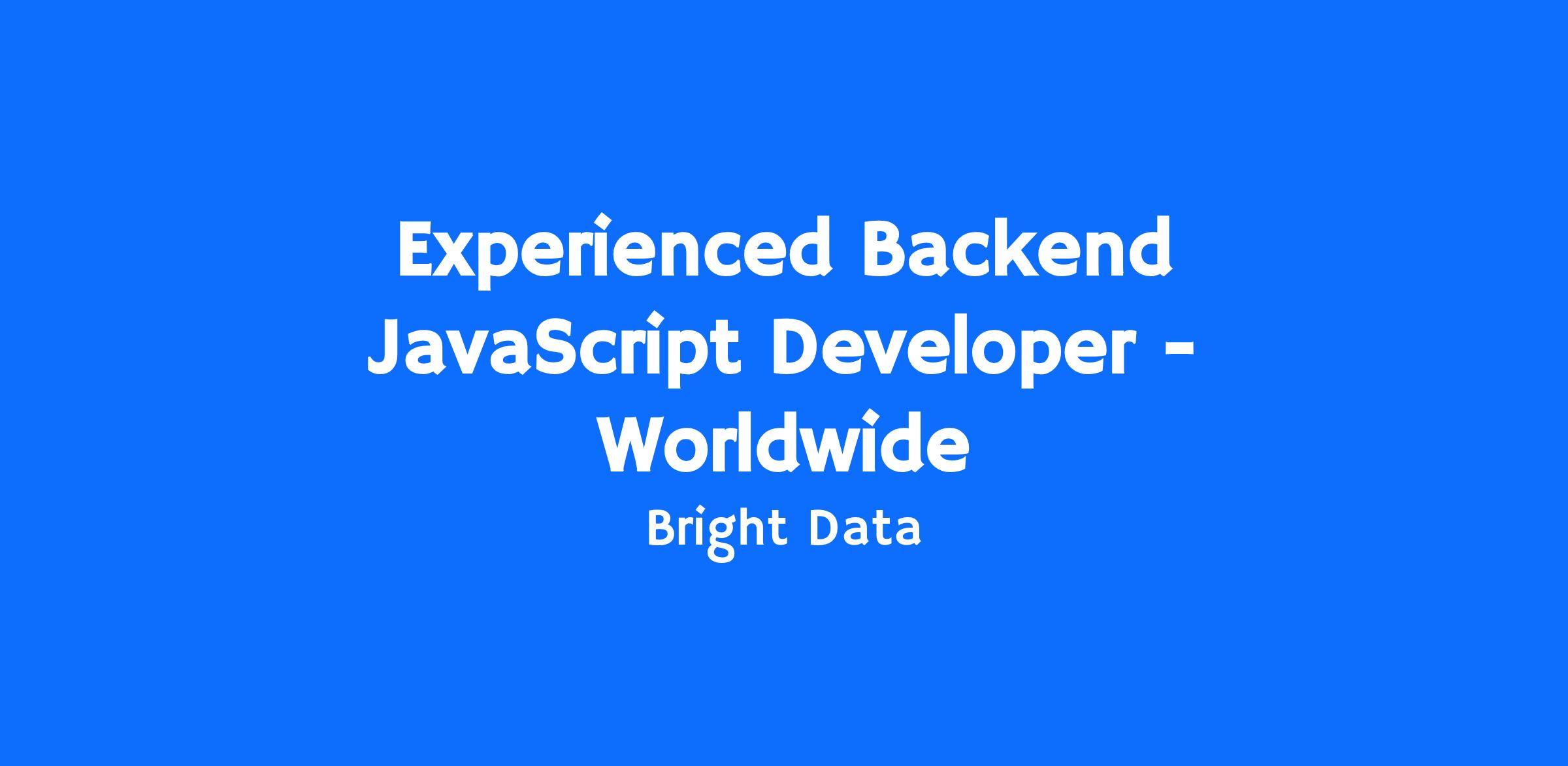 Experienced Backend JavaScript Developer - Worldwide