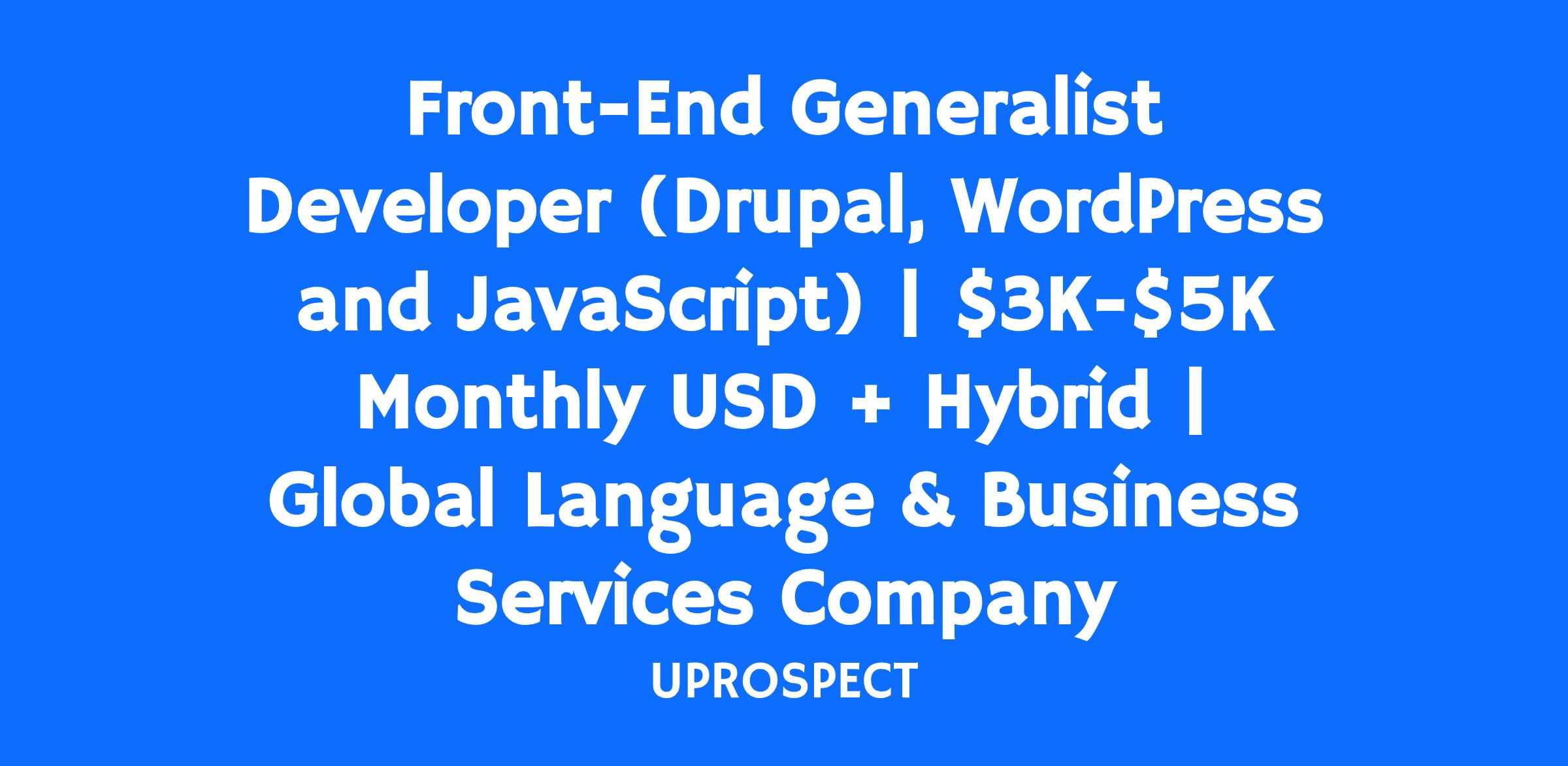 We are looking for a Front-End Generalist Developer with strong experience across Drupal, WordPress, JavaScript, and modern front-end frameworks. This role is ideal for someone comfortable working across CMS-based platforms while also contributing to modern, component-driven front-end development.