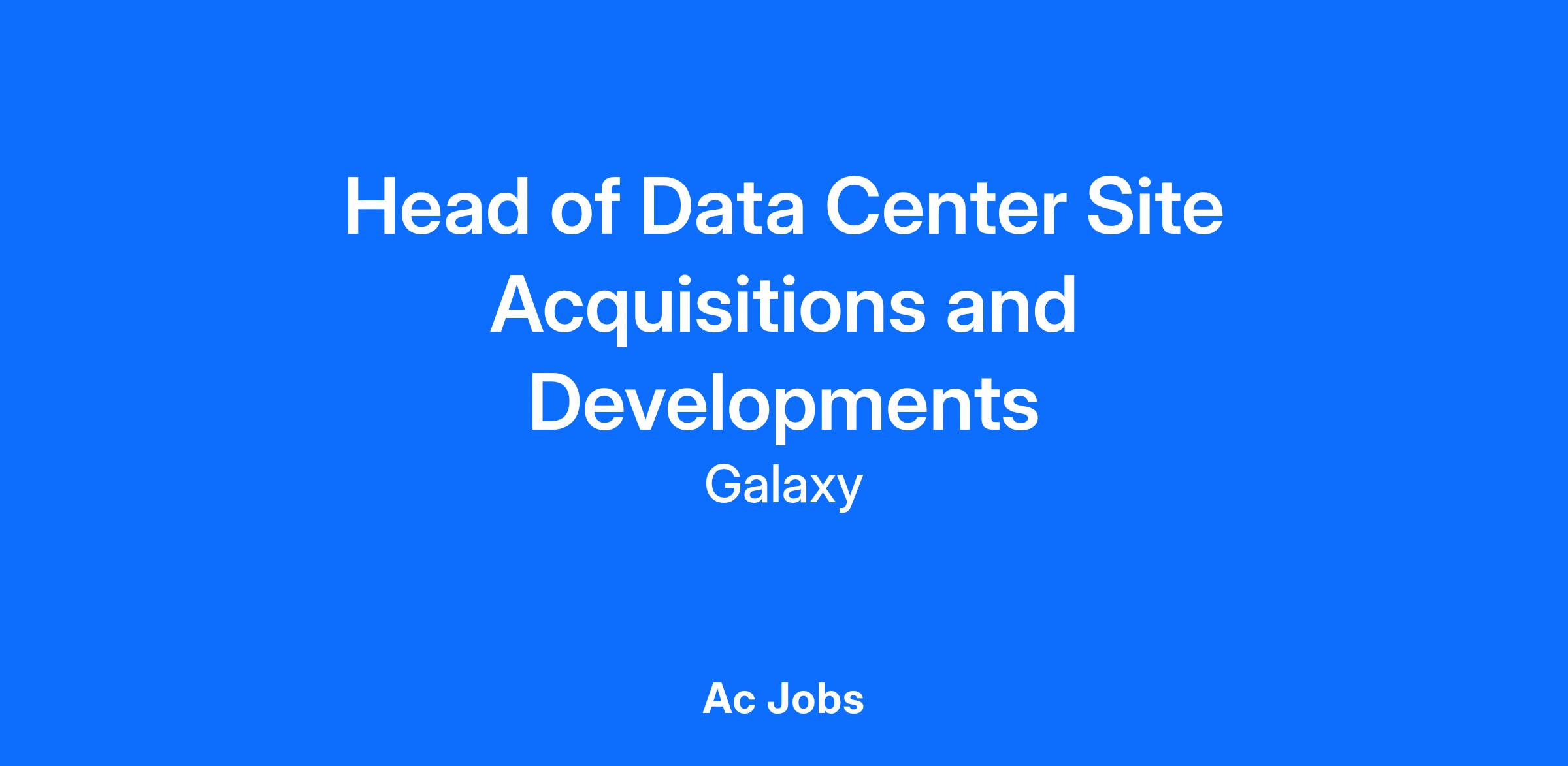 Galaxy Digital Data Centers is seeking a Head of Data Center Site Acquisitions and Development to lead the sourcing, evaluation, and execution of large-scale data center campus developments globally. This role will help drive site selection, acquisition, and delivery strategy for mission-critical infrastructure that supports hyperscale and AI-driven workloads.