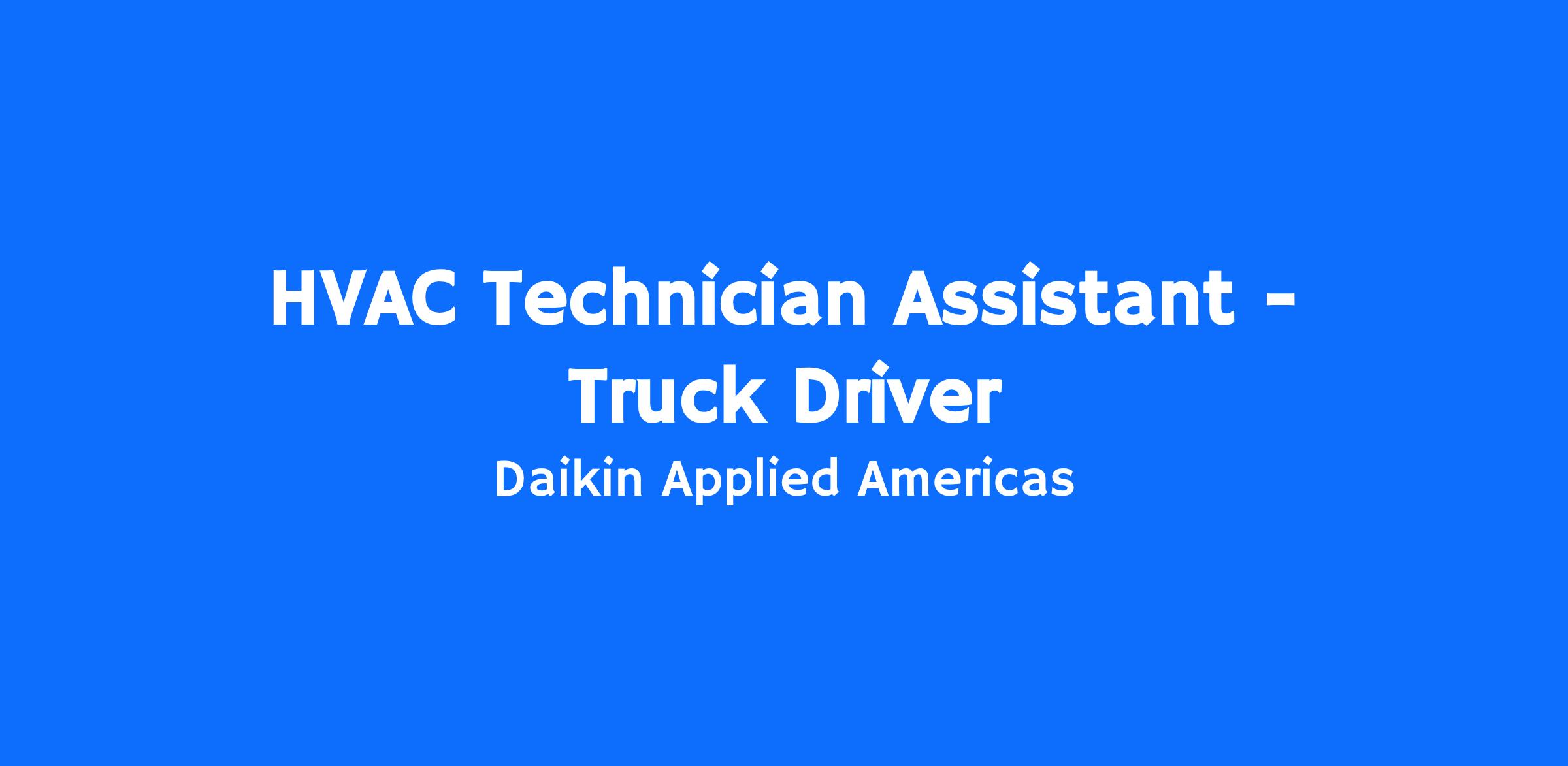 Daikin Applied is seeking a HVAC Technician Assistant - Truck Driver. In this role, you will be assisting in the diagnosing, repairing, and performing preventative maintenance for commercial and industrial HVAC equipment. The responsibilities will increase based on exposure to tasks, ability to develop troubleshooting skill set, and consistent and accurate completion of assignments. The HVAC equipment you will be servicing includes but is not limited to large and small rooftop units, split systems, chillers, and boilers. Come be a part of an exciting journey at Daikin Applied, where innovation and excellence drive our every endeavor!