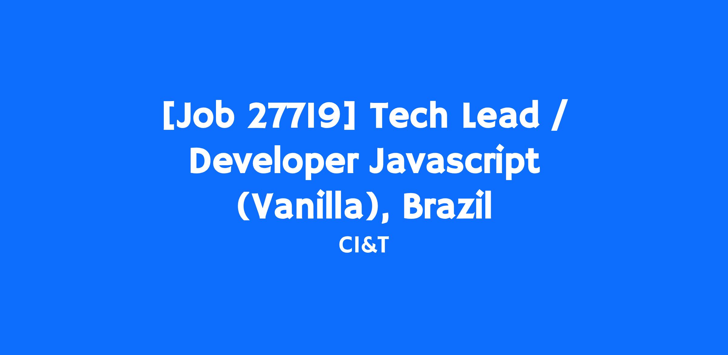 Estamos em busca de uma pessoa Tech Lead / Developer Javascript (Vanilla) para integrar nossa equipe de desenvolvimento de um produto de dados e atuar em um cliente do ramo de Entretenimento.