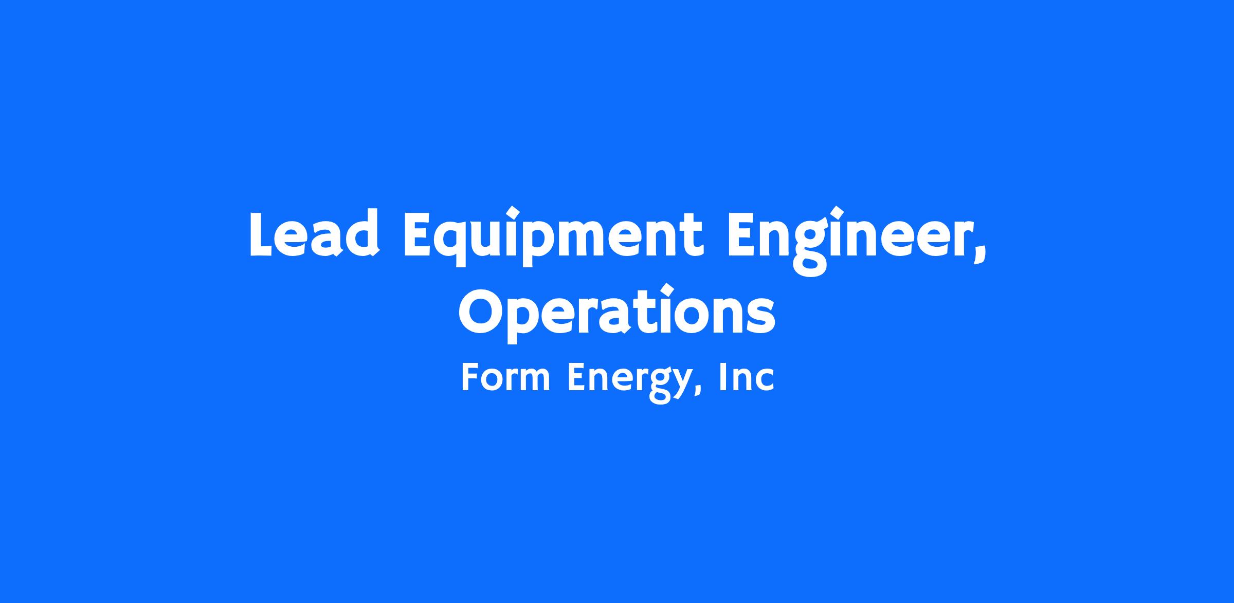 We’re looking for a Lead (Staff) Equipment Engineer to join our Operations Engineering team. In this role, you will use your deep familiarity with a variety of manufacturing equipment to lead the ramp up of production while maintaining quality. From assisting in commissioning to developing maintenance strategies, you will be responsible for optimizing and owning first-of-its-kind equipment. You will drive the identification and resolution of issues and lead the design of creative tooling that minimizes downtime and enables a highly efficient process. This is a fantastic opportunity to make a direct impact in the production of Form Energy’s revolutionary energy storage solutions.
