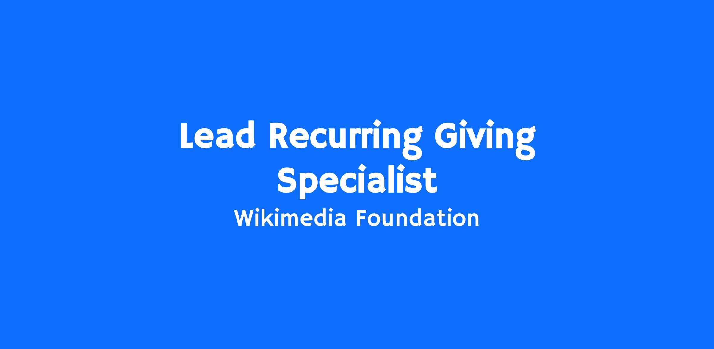 The Wikimedia Foundation is expanding its team and seeking an experienced fundraiser to own and grow our recurring giving program. This role is responsible for driving retention, upgrade, reactivation, and long-term value of monthly and annual donors, and for contributing to sustainer acquisition strategy in close coordination with the dedicated team.