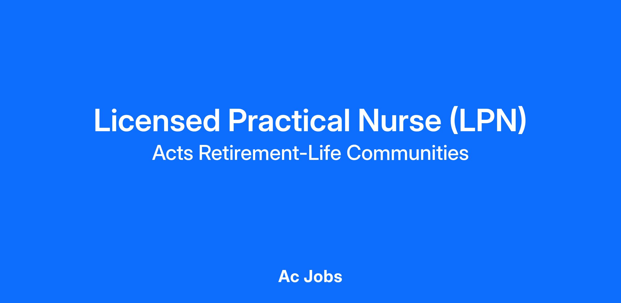 Acts is currently seeking qualified candidates for the role of Licensed Practical Nurse (LPN) in our skilled nursing neighborhood.