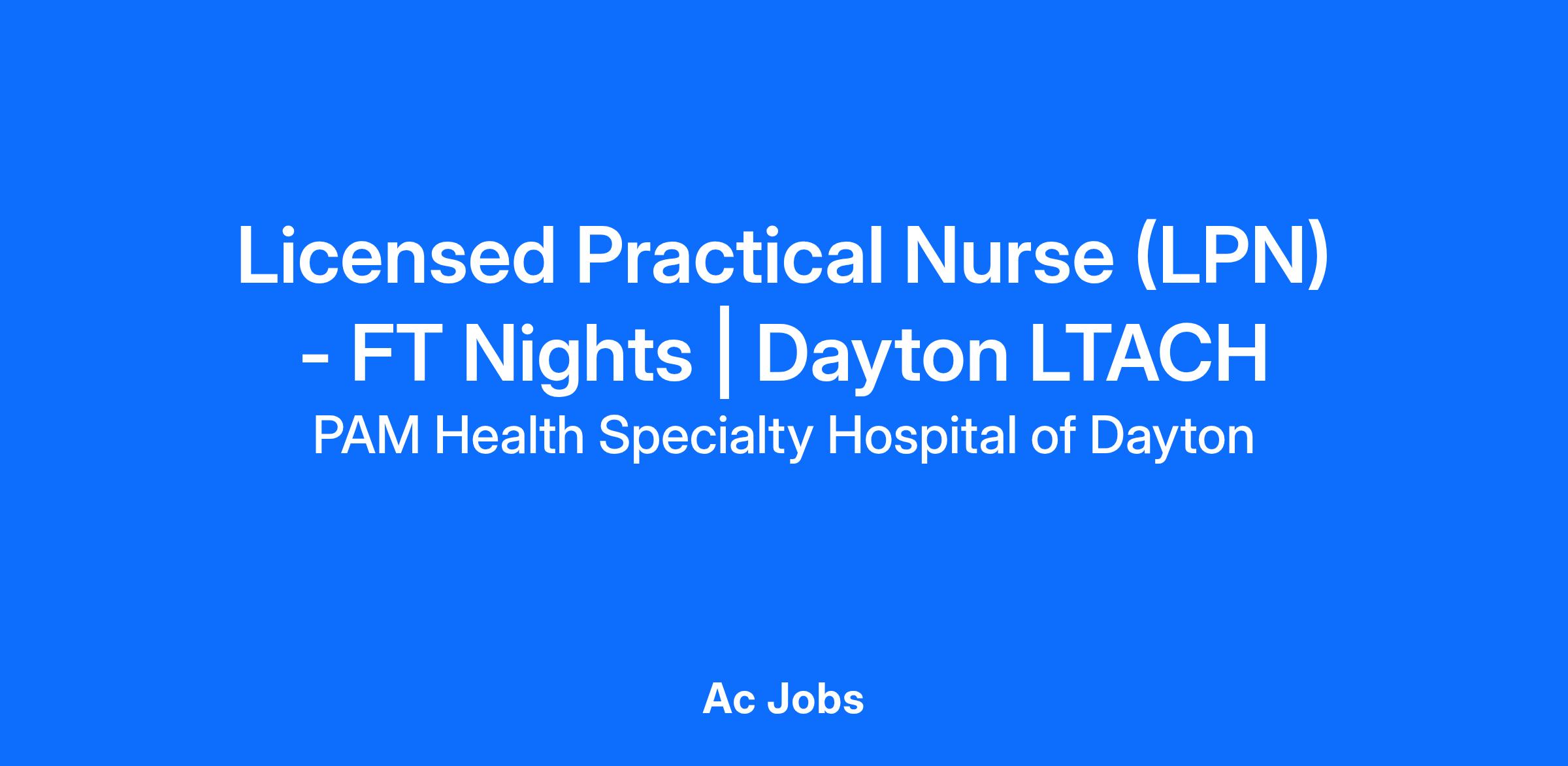 Licensed Practical Nurse (LPN) - FT Nights | Dayton LTACH