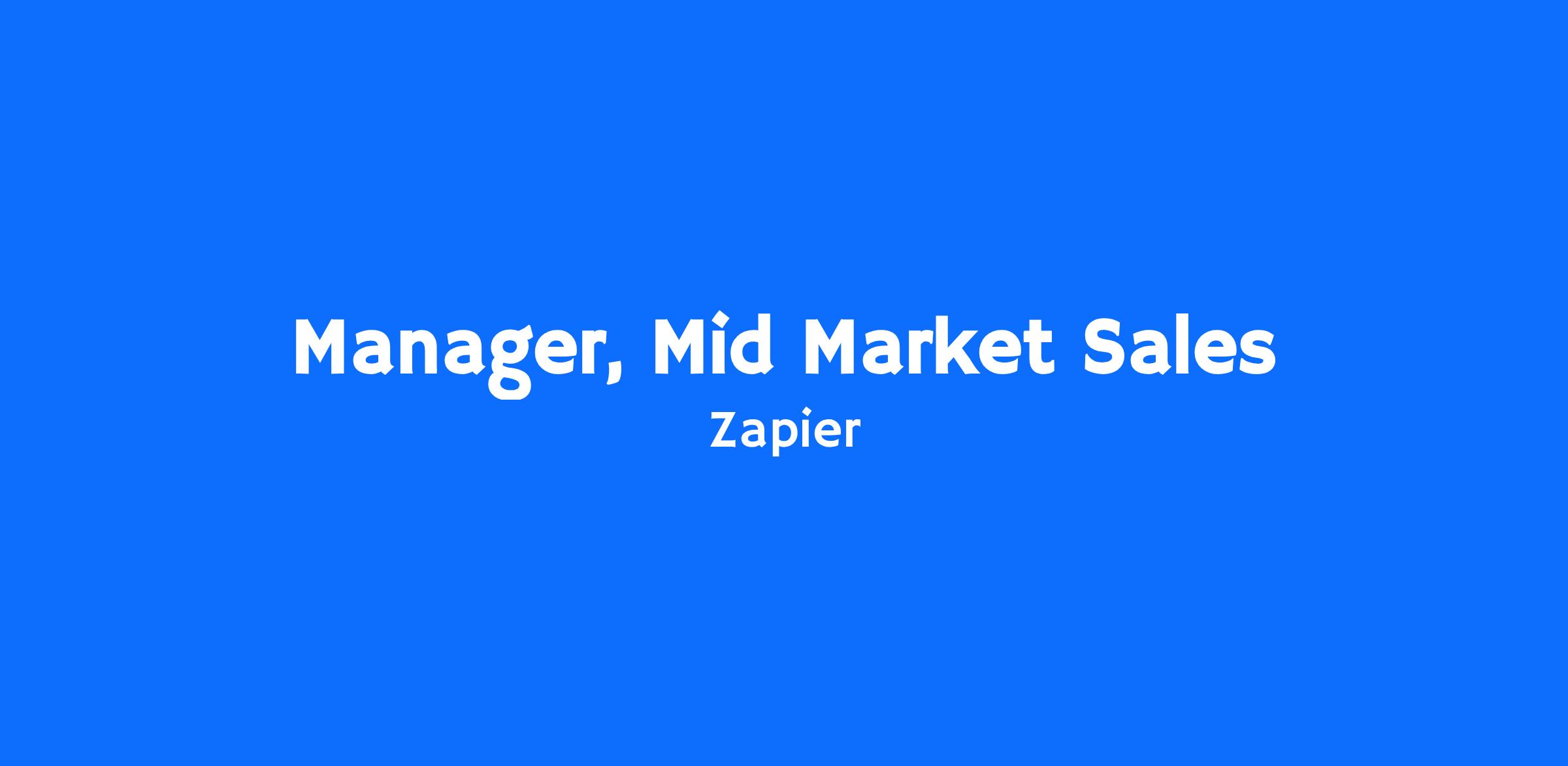 Zapier is hiring a Sales Manager to join our Sales and Customer Success org. In this role, you’ll lead a Mid Market Sales team responsible for selling Zapier’s AI Orchestration platform offerings to customers across the globe. The Mid Market Sales team targets customers who have between 1-999 employees, and is responsible for net new logos and expansion. A successful Sales Manager has demonstrated success as both a seller and leader, and takes ownership for the outcomes of the sales program.