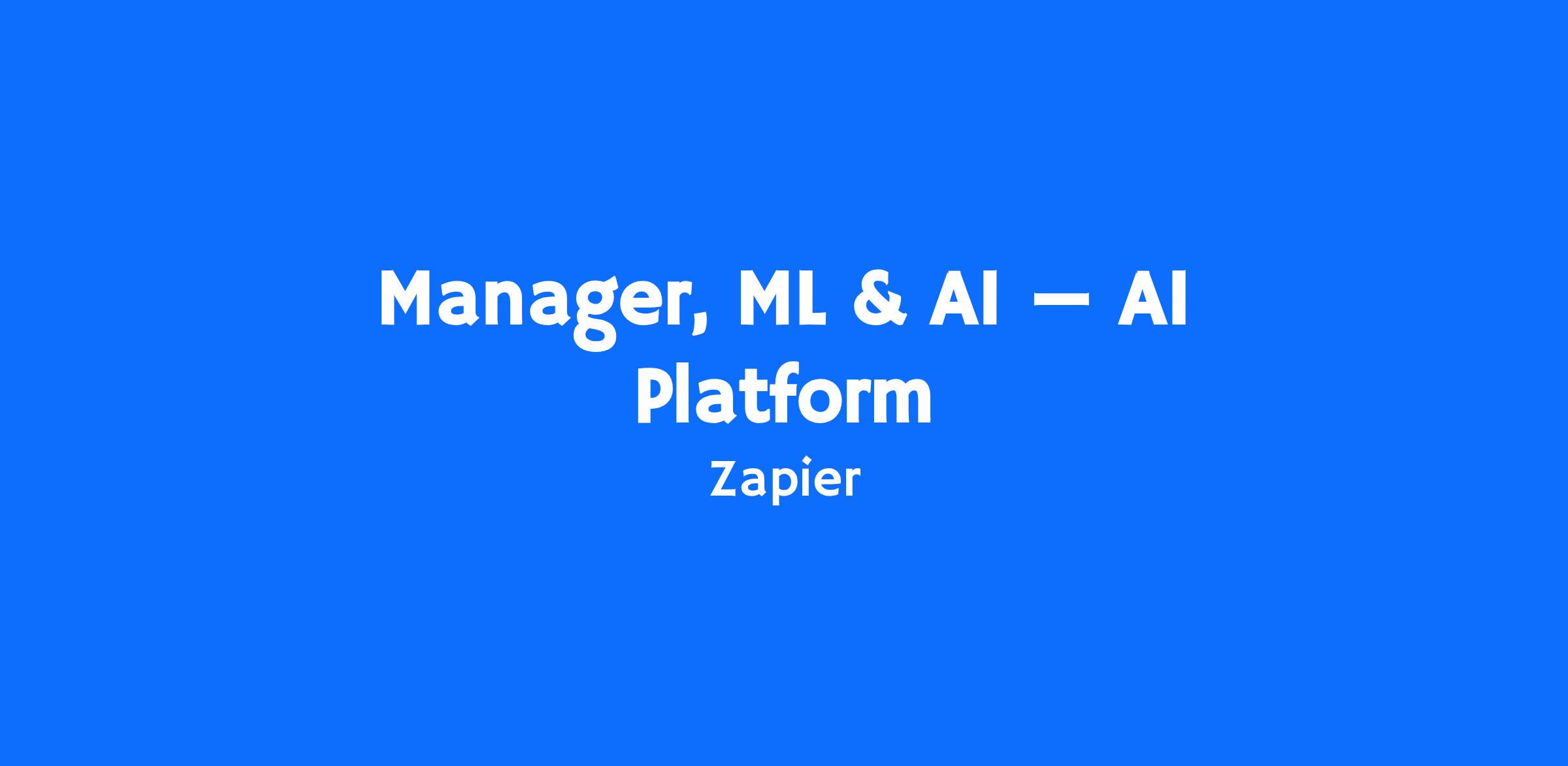 Zapier is looking for a Manager, Machine Learning & AI to lead our AI Platform team within the Data organization. AI is at the core of how Zapier helps customers automate work - powering everything from established AI/ML-driven experiences to new experiments that push what’s possible with LLMs and agents. This is an exciting moment to join: we’re scaling proven AI capabilities while also building the next generation of AI features, which means there’s real impact today and meaningful greenfield work ahead.