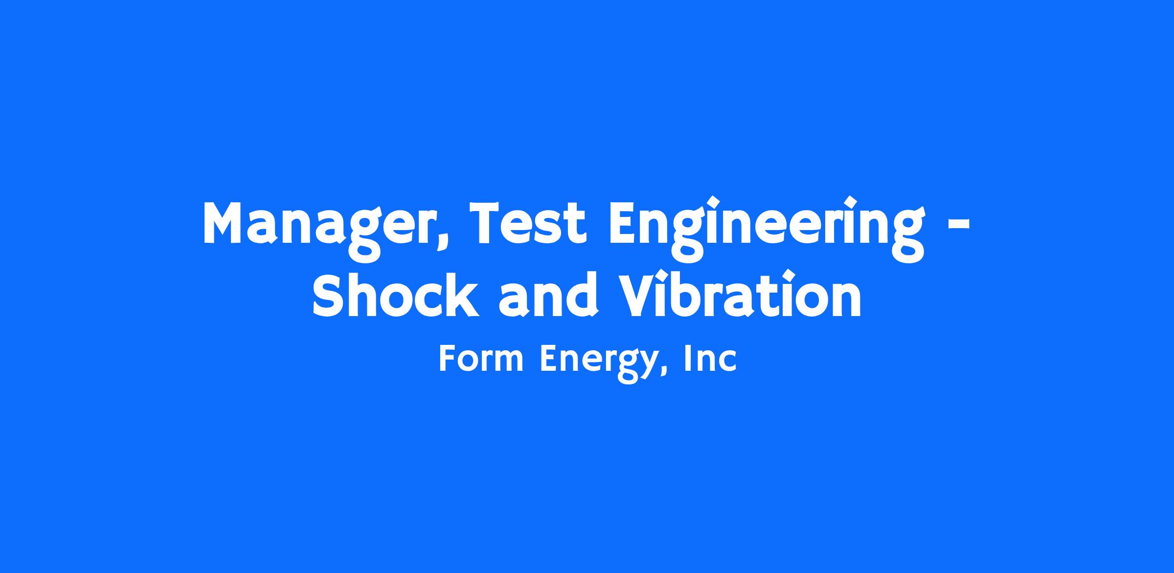 Form Energy is hiring a Technical Manager of Test Engineering to lead our shock and vibrations department. This role reports into our Hardware Design Engineering department. As part of our Shock and Vibrations Test Engineering Team, you will be involved in managing and mentoring test and analysis engineers, developing test strategies and prioritizing tests, in partnership with structural design teams. This is an exciting opportunity to help shape and be part of the growth of a fast-moving company with breakthrough technology and an incredible mission!