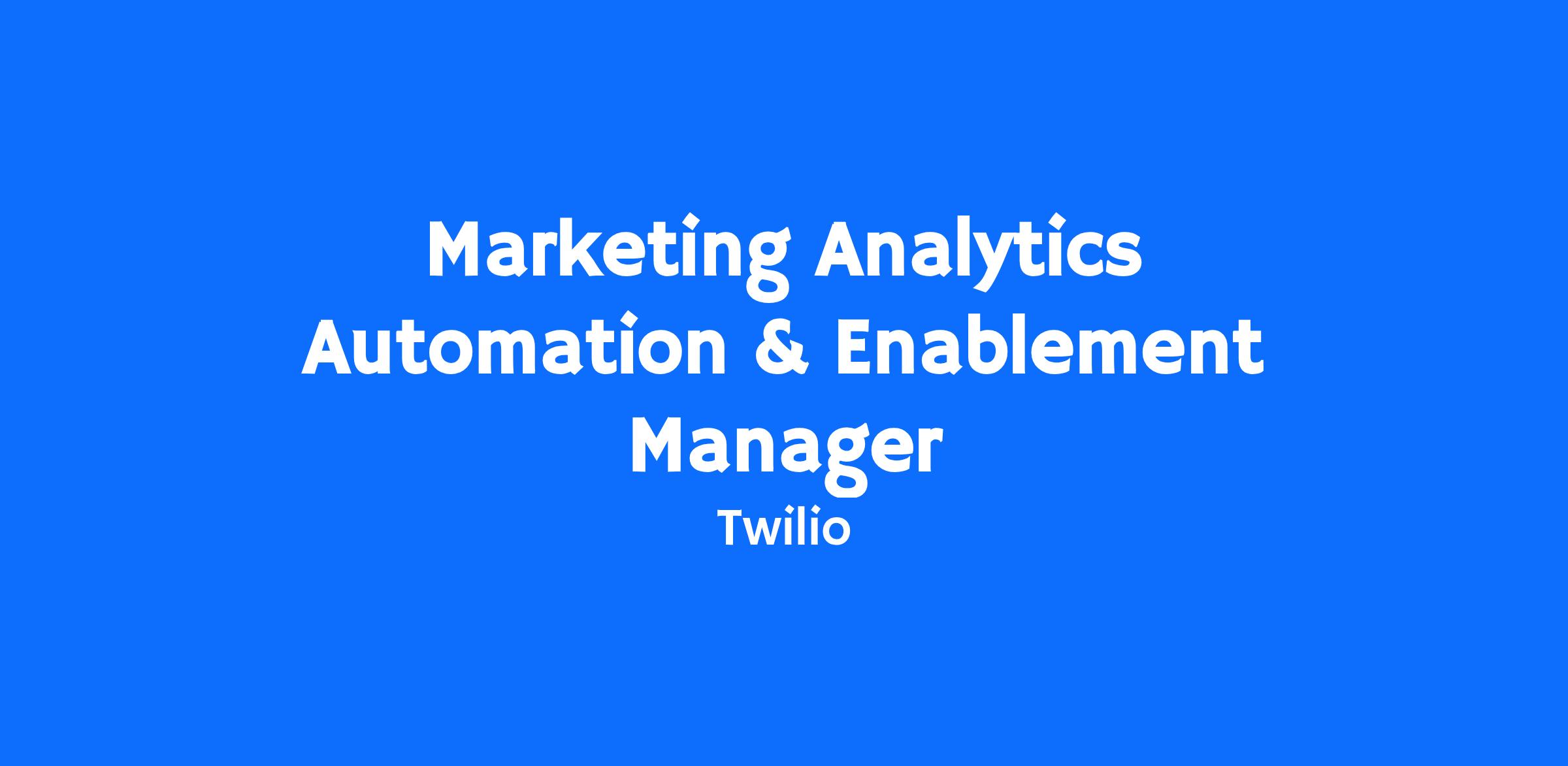 Join the team as Twilio’s next Marketing Analytics Automation & Enablement Manager.