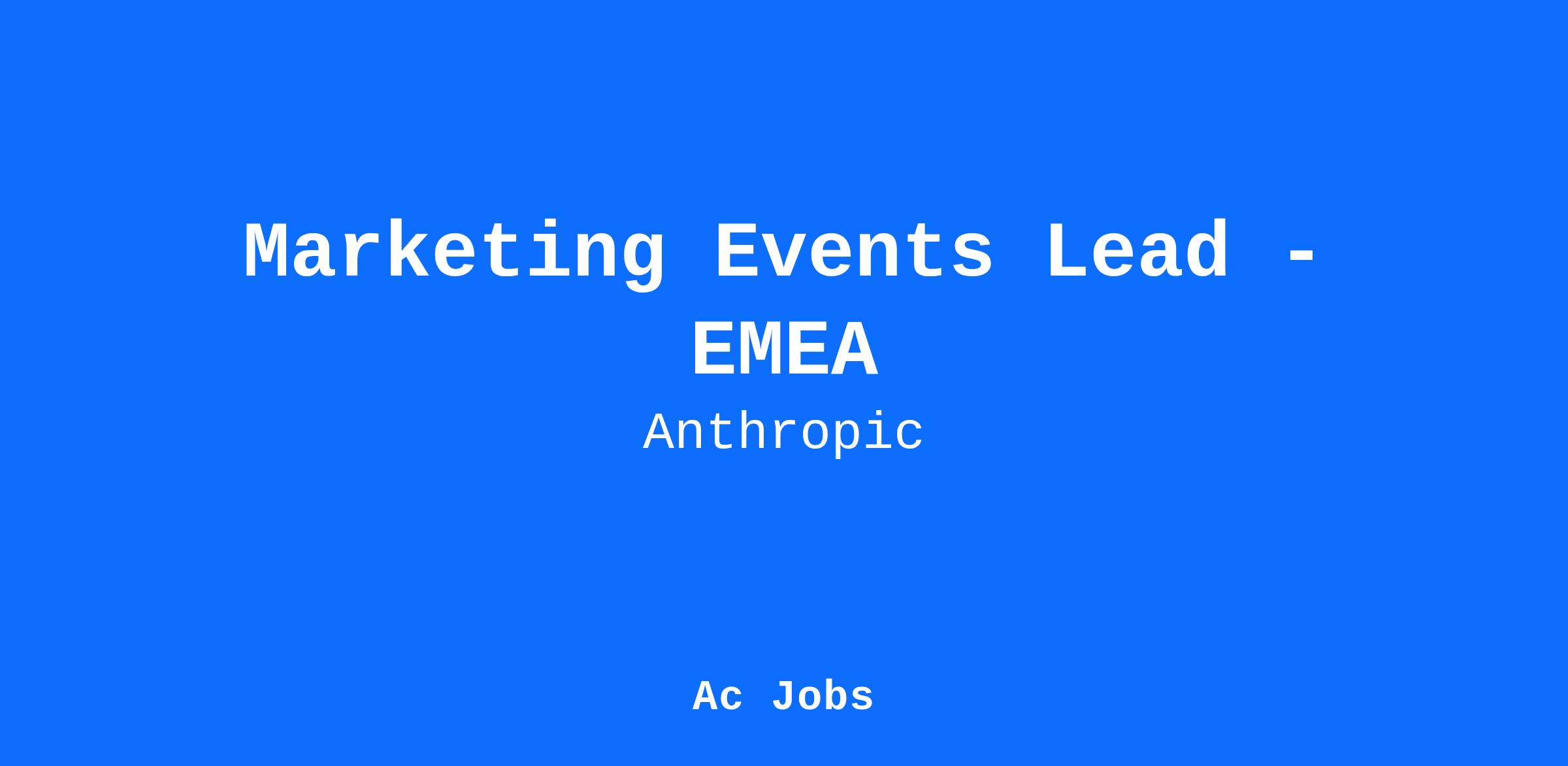 Anthropic is seeking a Marketing Events Lead to build and execute our events strategy across Europe, Middle East, and Africa. As our first full-time events hire in the region, you'll establish Anthropic's presence through high-impact strategic programs that advance critical business relationships and support our mission of ensuring safe and beneficial AI development.