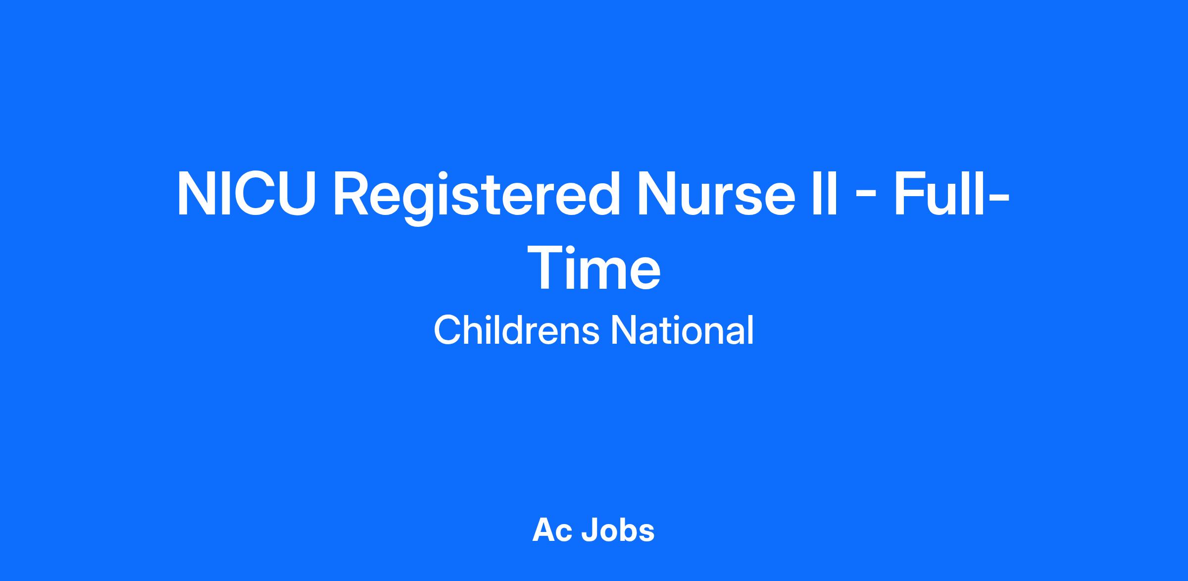 Required Skills/KnowledgeThe licensed Registered Nurse will successfully complete the hospital and nursing orientation at Children’s National.