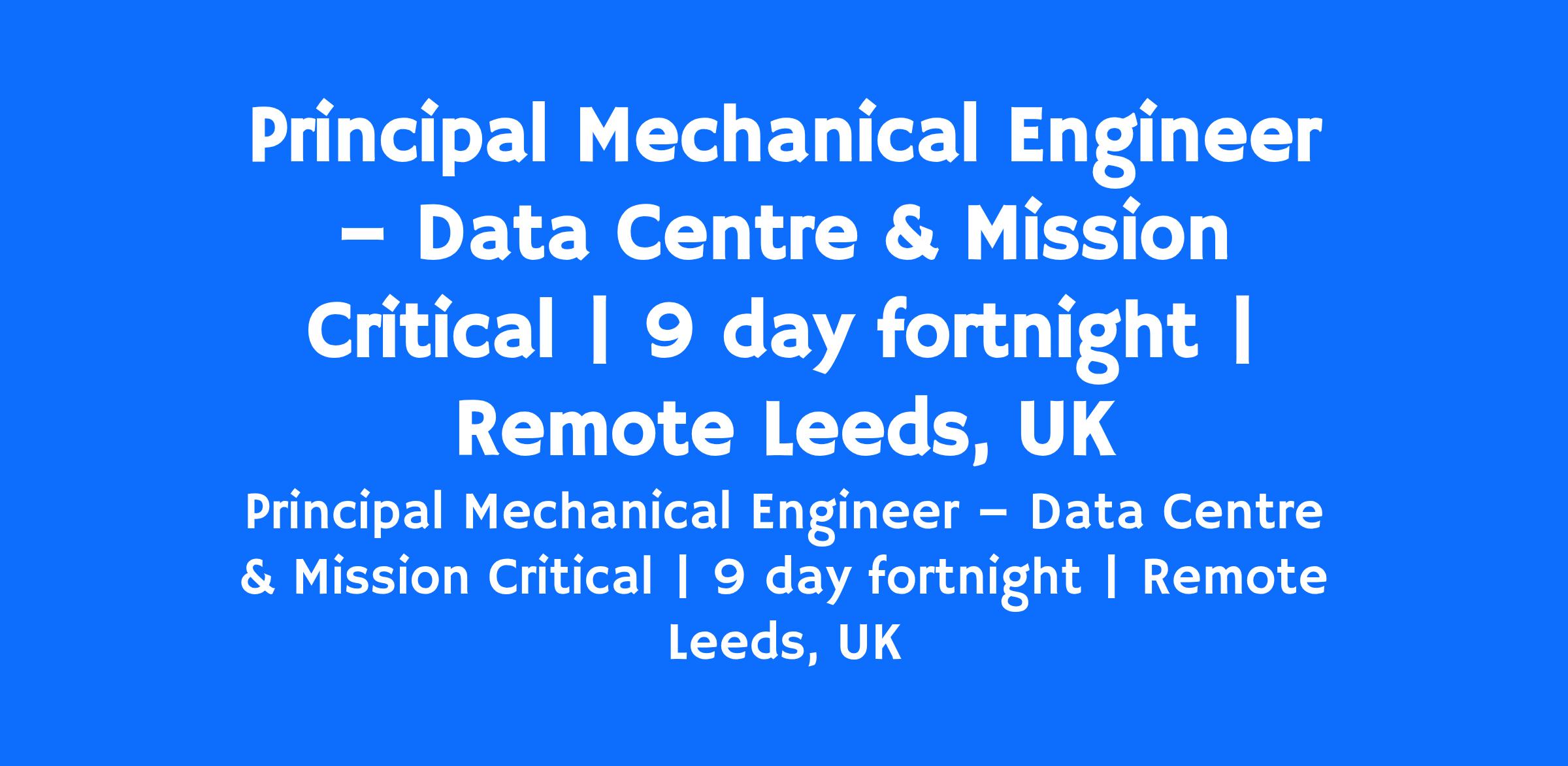You will join our Data Centre and Mission Critical team based in our Leeds office.