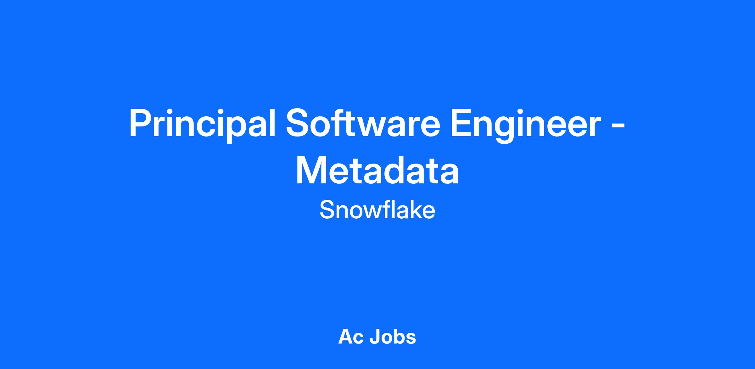 AS A PRINCIPAL SOFTWARE ENGINEER - METADATA, YOU WILL: