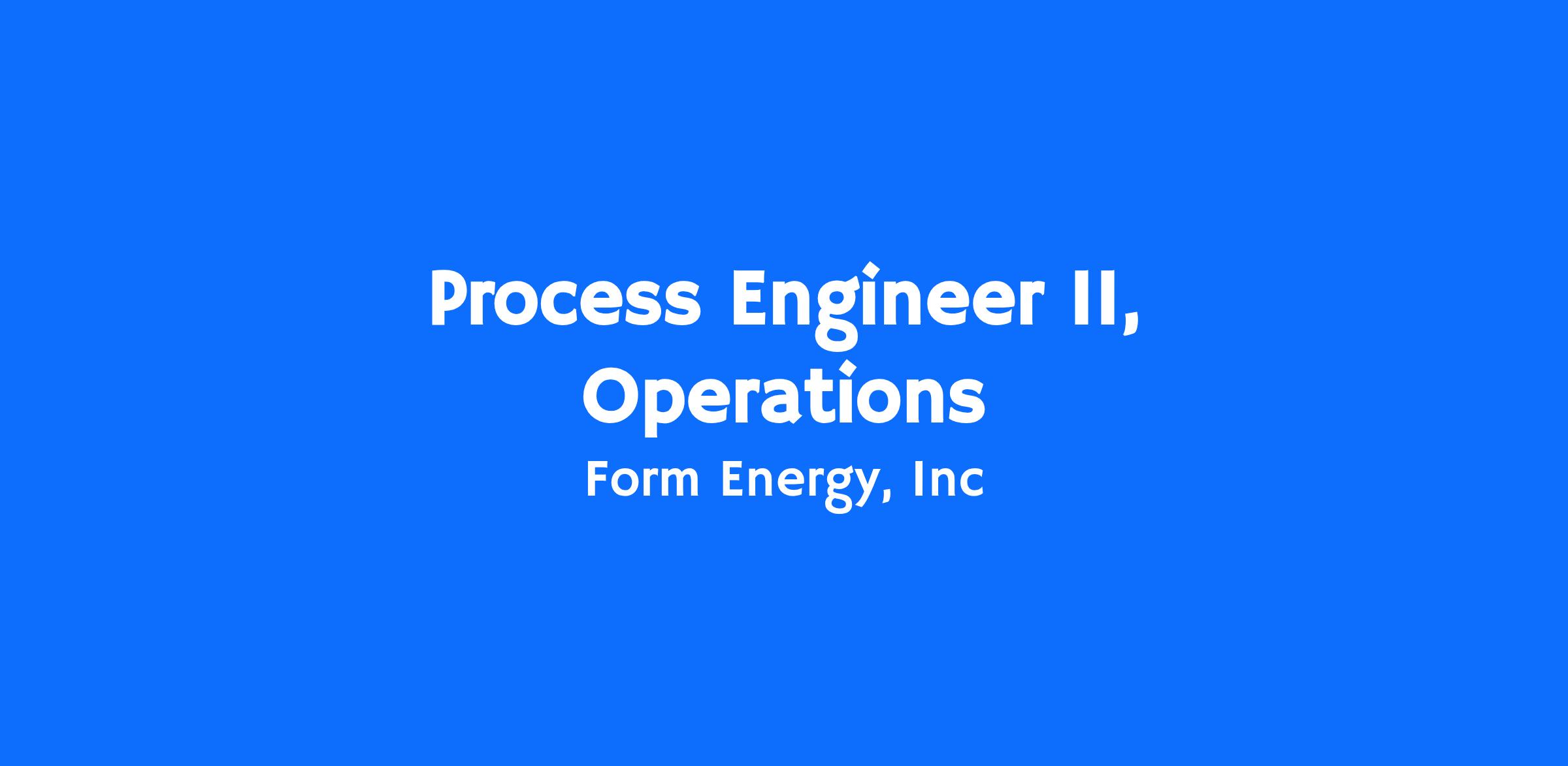 We are looking for a Process Engineer II to join our Operations Engineering team. In this role, you will be a key contributor as we scale the production of our iron-air battery technology. You will contribute to the optimization of production workflows, using data-driven insights to enhance quality, throughput, and yield. By partnering across our team to bridge the gap between process development and high-volume execution, you will ensure our manufacturing processes are both robust and scalable. Your work in driving these technical improvements directly enables the delivery of long-duration energy storage systems essential for a reliable electric grid.