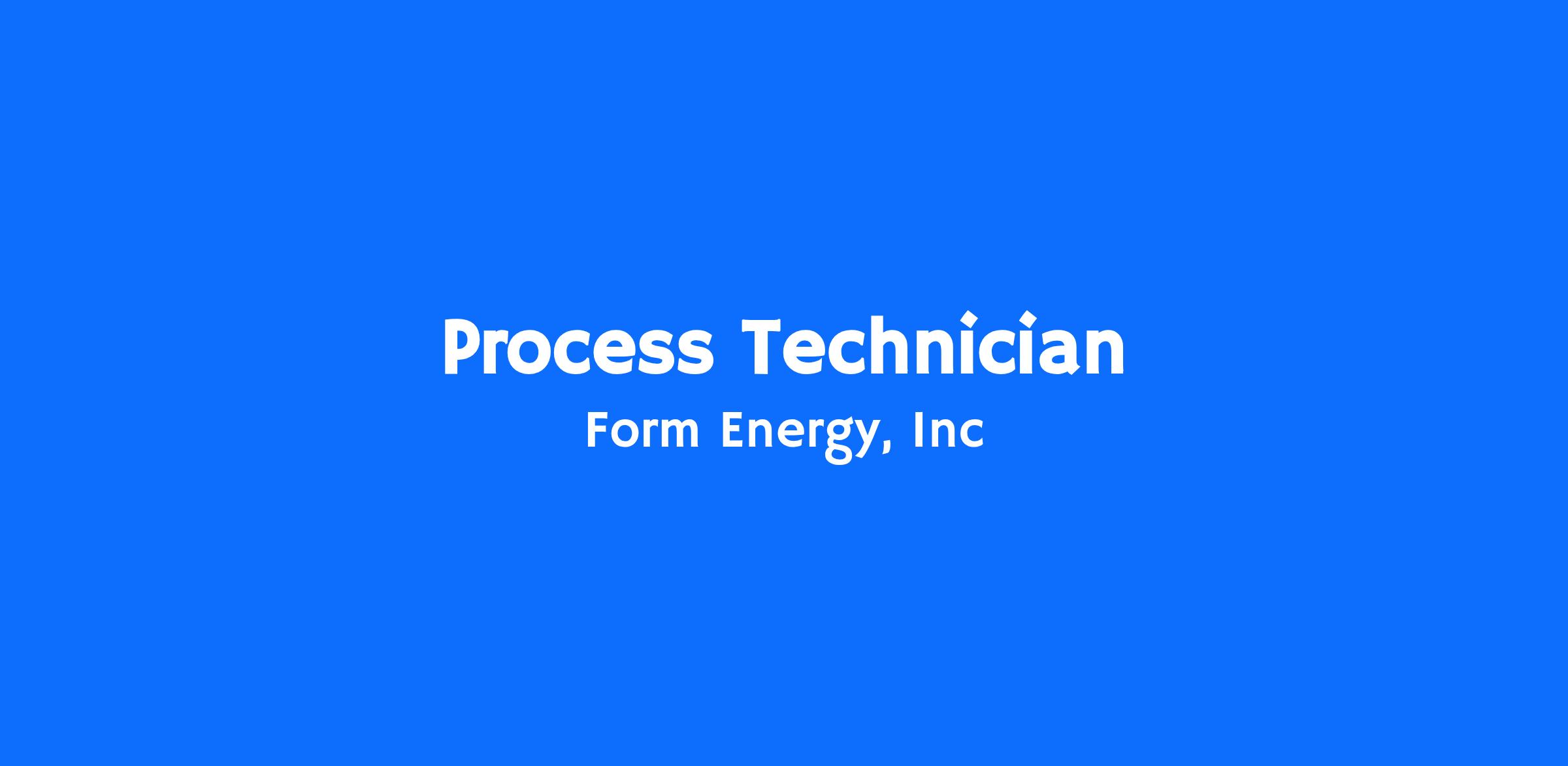 Form Energy is hiring a process engineering technician to support our operations engineering team. In this role, you will be involved in engineering projects, new process deployment, and continuous improvement in partnership with production teams. This is an exciting opportunity to help shape and be part of the growth of a fast-moving company with breakthrough technology and an incredible mission!