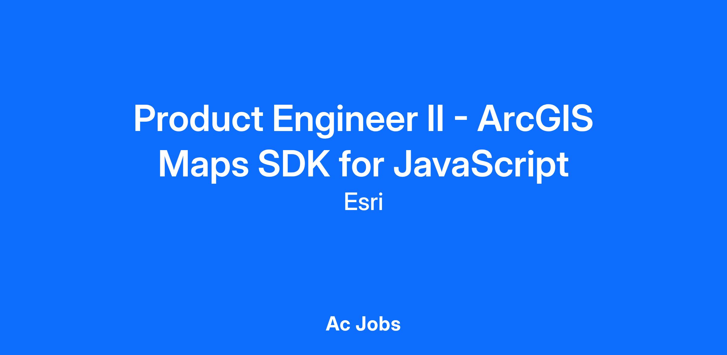 Are you passionate about enhancing web experiences and pushing browser capabilities? Join us as a Product Engineer and help shape the future of Esri’s web offerings. In this role, you’ll improve interactive maps and apps, support complex analyses, and enable smarter decision-making. You'll work closely with developers to align requirements, design solutions, manage issues, and create clear documentation while ensuring quality from concept to delivery. Be part of a fast-paced team that builds, tests, and supports the ArcGIS Maps SDK for JavaScript, ArcGIS Online, and ArcGIS Enterprise.