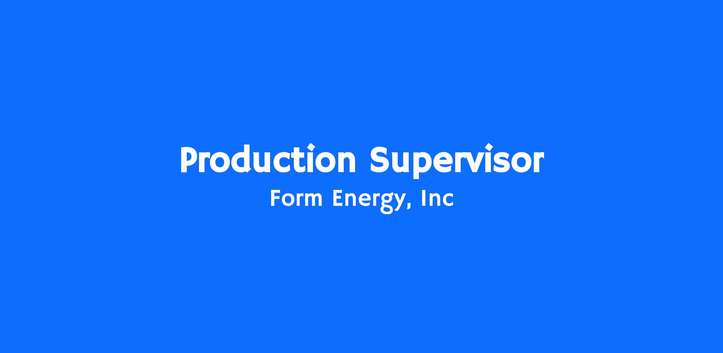Form Energy is seeking an experienced and dynamic Production Supervisor to join our team at Form Factory 1 in Weirton, WV, overseeing our Pack assembly production operations.