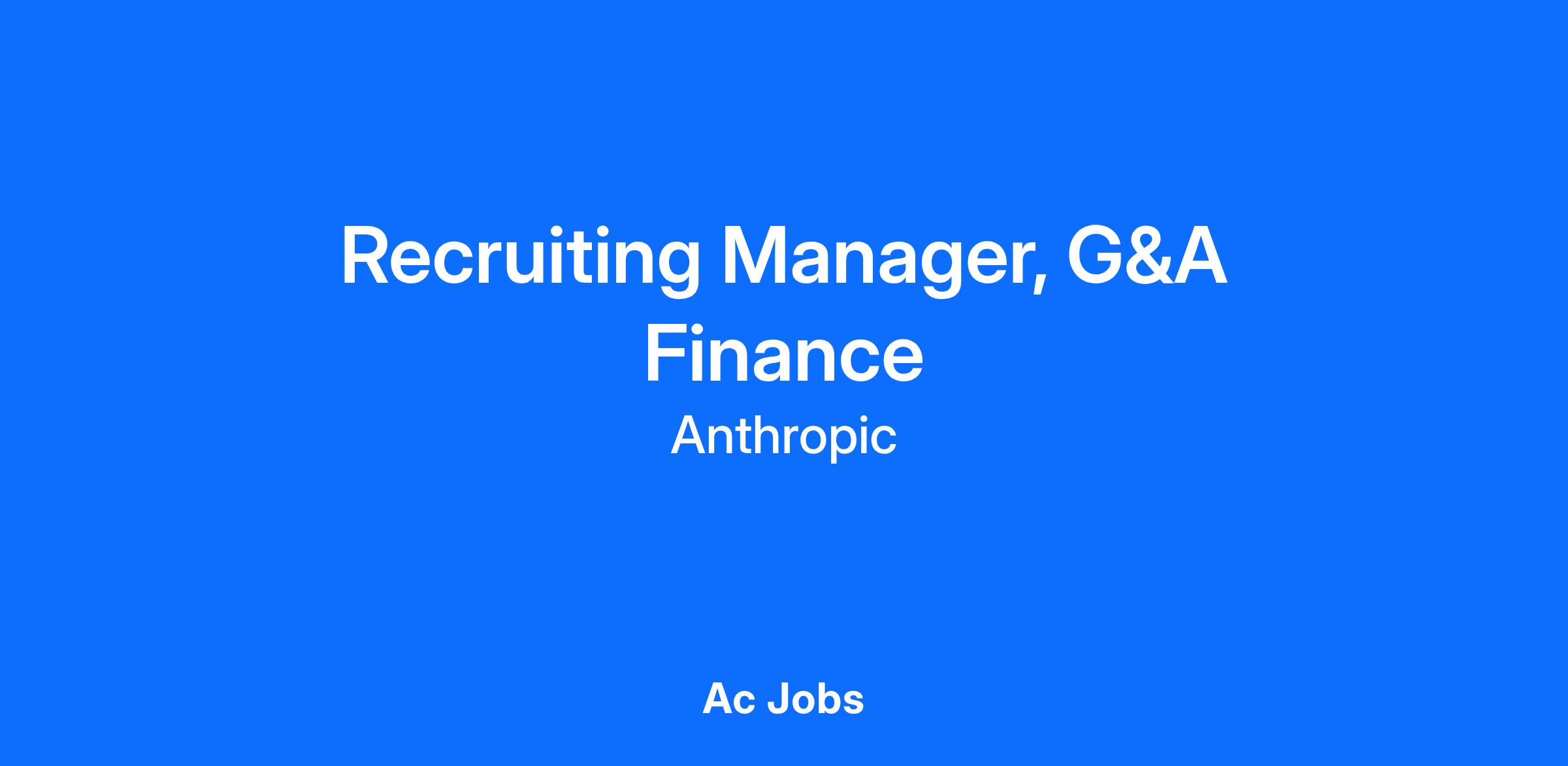 Anthropic is seeking an exceptional recruiting leader to build and scale our General & Administrative (G&A) recruiting function during a pivotal period of growth. As Recruiting Manager, G&A, you'll partner closely with senior leaders across Finance, Legal, People, and Operations to attract world-class talent that will help us safely scale AI systems that benefit humanity.