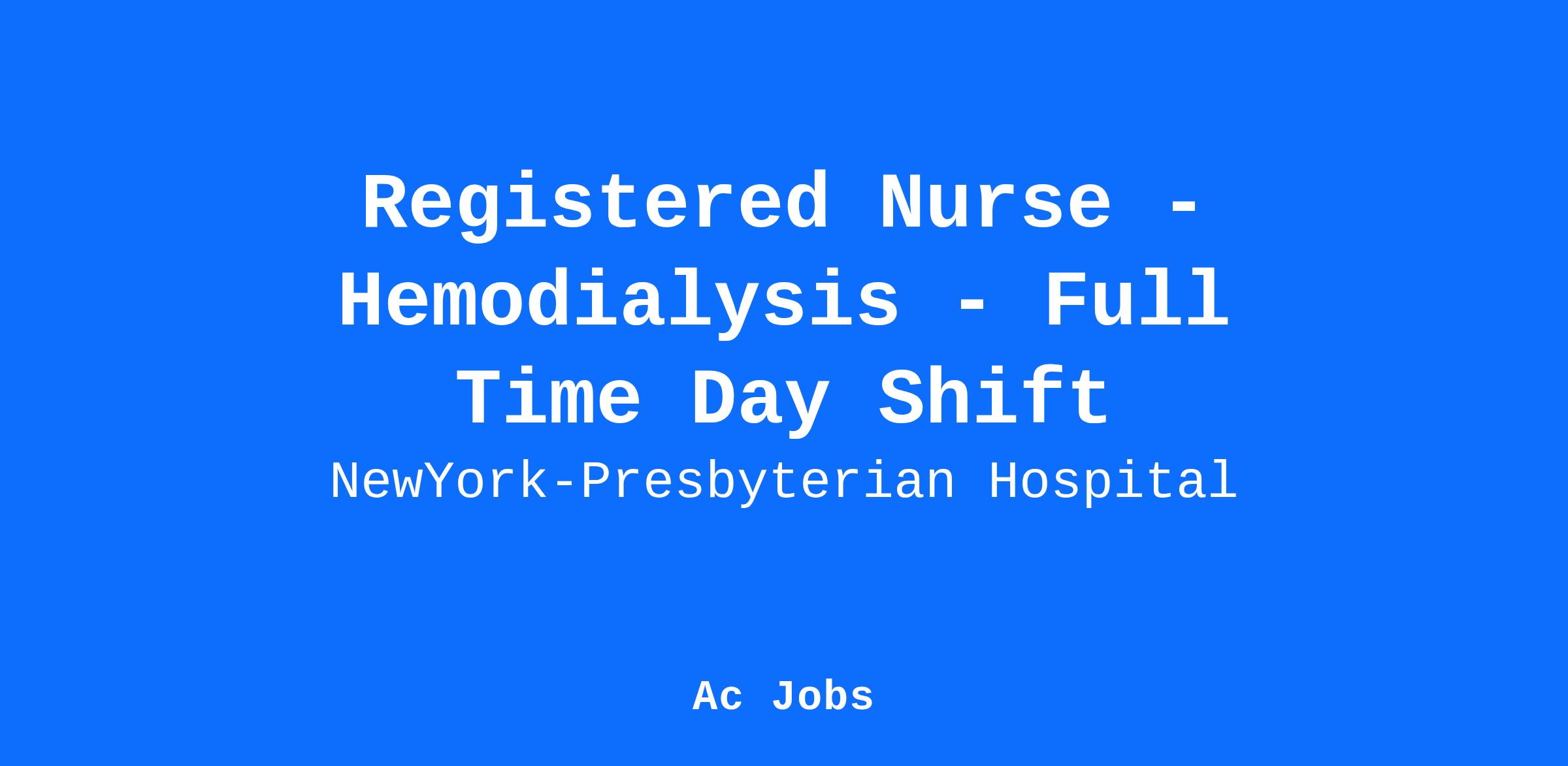 This is a Full Time Day shift (9A-9:15P; 37.5 hrs/wk) position at NewYork-Presbyterian/Queens. On call required.