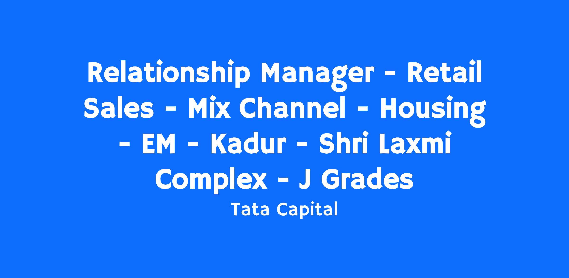 Relationship Manager - Retail Sales - Mix Channel - Housing - EM - Kadur - Shri Laxmi Complex - J Grades