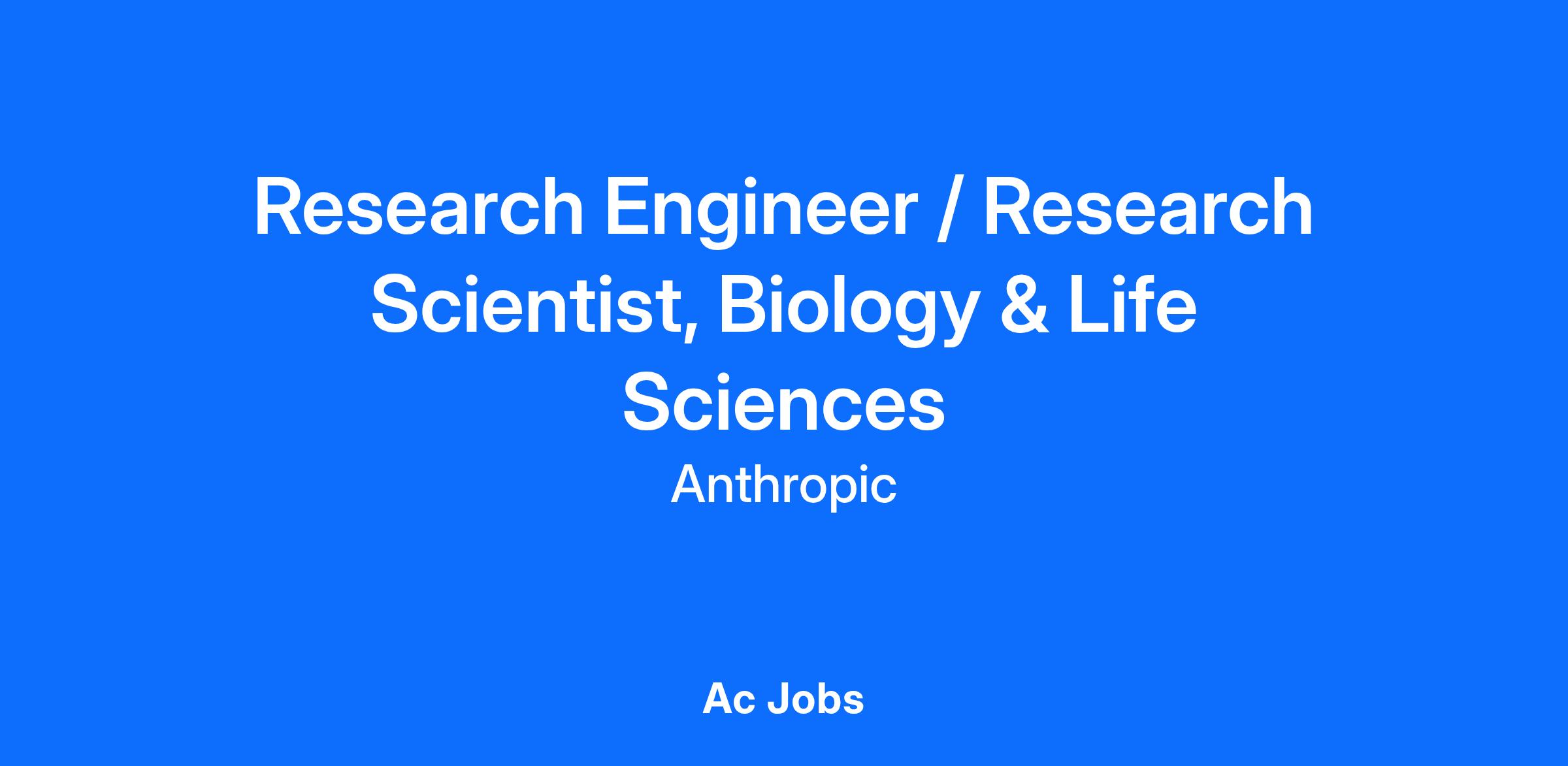 We're seeking an exceptional Research Engineer / Research Scientist to join our Life Science team at Anthropic. Our team is organized around the north star goal of accelerating progress in the life sciences, from early discovery through translation, by an order of magnitude. Our team likes to think across the whole model stack. In this role, you'll combine your deep expertise in biology with machine learning engineering to develop novel evaluation frameworks and training strategies that push the frontier of what AI can achieve in biology.