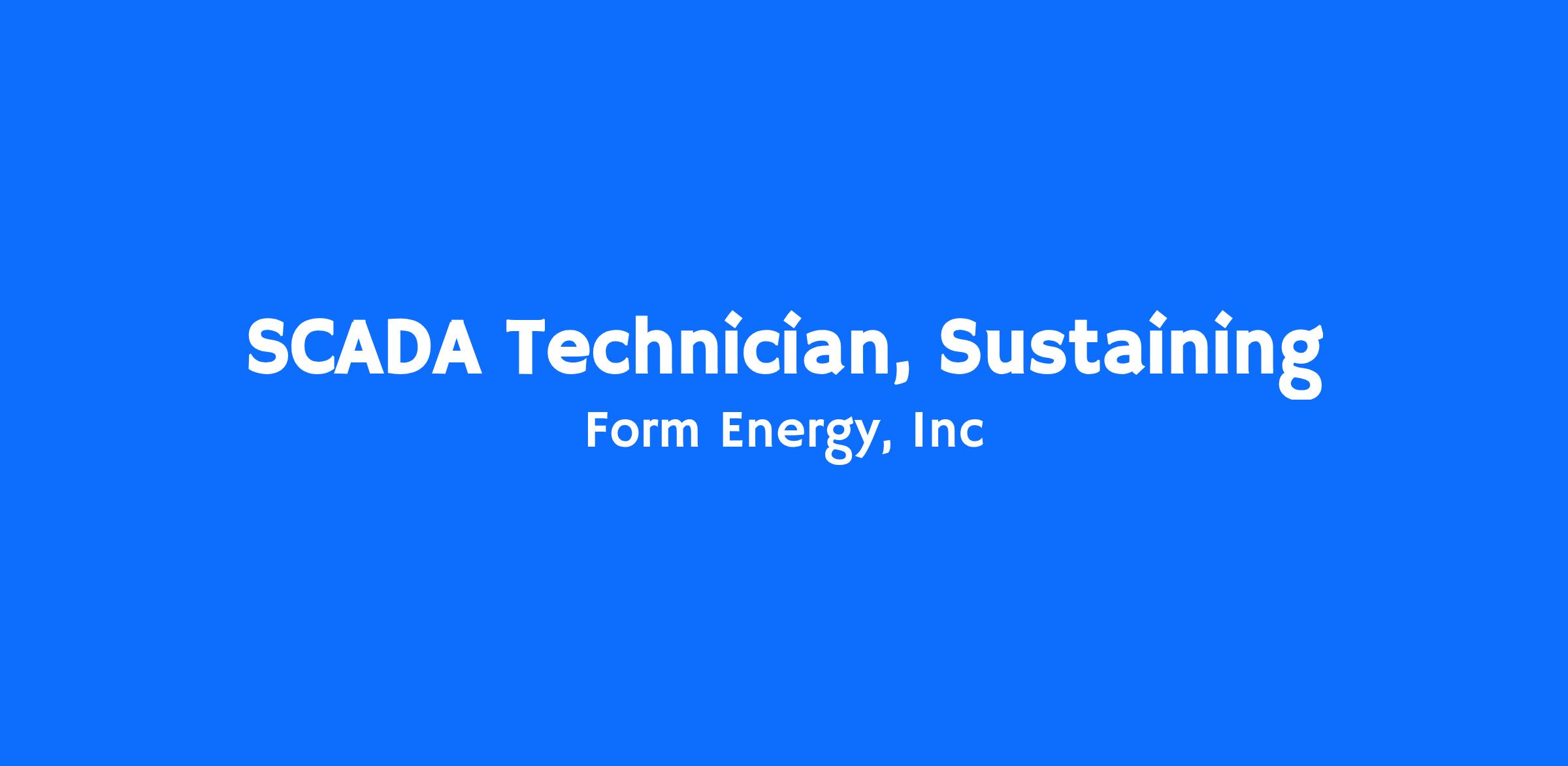 We are looking for an experienced SCADA technician to join the Manufacturing Control and Execution Systems - Sustaining team. In this role you will be responsible for both maintenance and continuous improvement of SCADA and HMI applications for novel equipment used to manufacture Form Energy’s Iron-Air battery. This role offers an exciting opportunity to be part of a mission critical team that owns control and execution systems throughout their lifecycle including design, development, deployment, and sustaining.