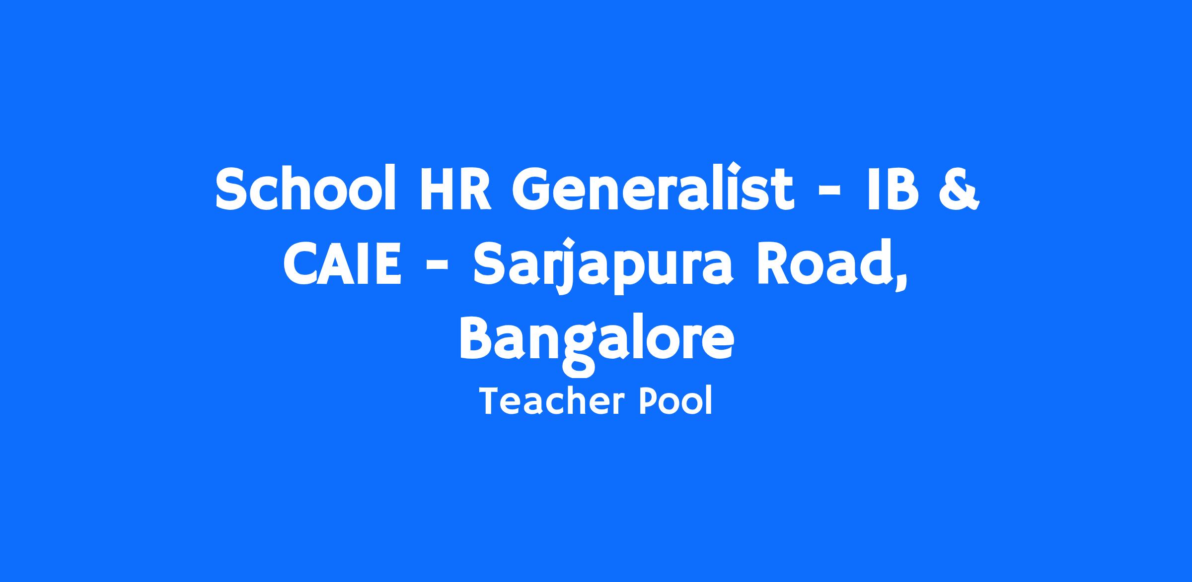 Primary Title: School HR Generalist (IB & CAIE Schools)