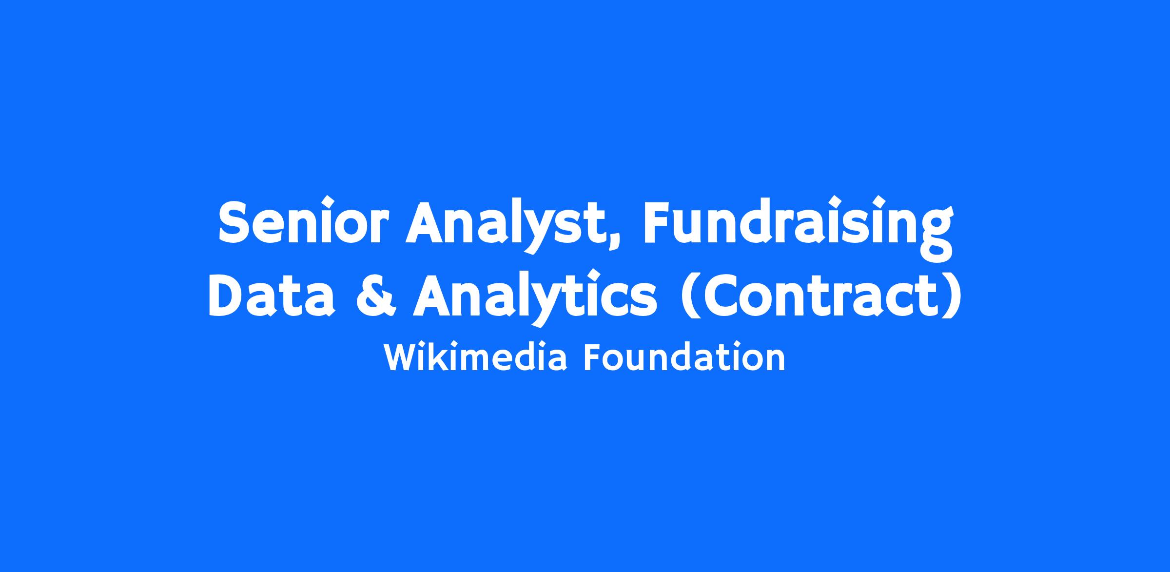 The fundraising team at the Wikimedia Foundation conducts worldwide campaigns across nearly 40 countries and 20 languages, collecting donations to support the Wikimedia Foundation’s mission to empower and engage people around the world with free knowledge. The Fundraising Operations team has an opening for a senior data analyst on our team, to support data-driven decisions to improve the effectiveness of our fundraising strategies, while staying true to our values of openness, transparency, and respect of user privacy. This role will be a full-time (40 hours/week) contractor position.