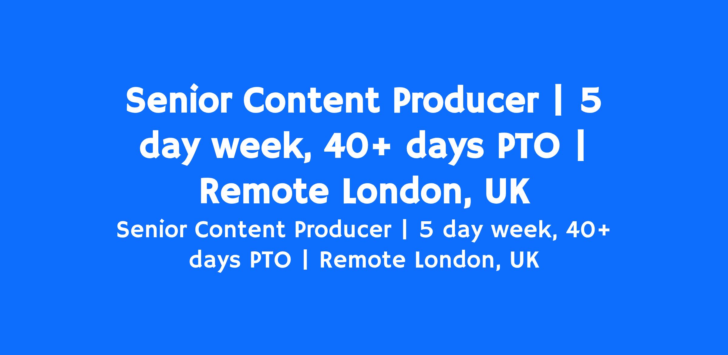 We’re looking for a Senior Content Producer to:
